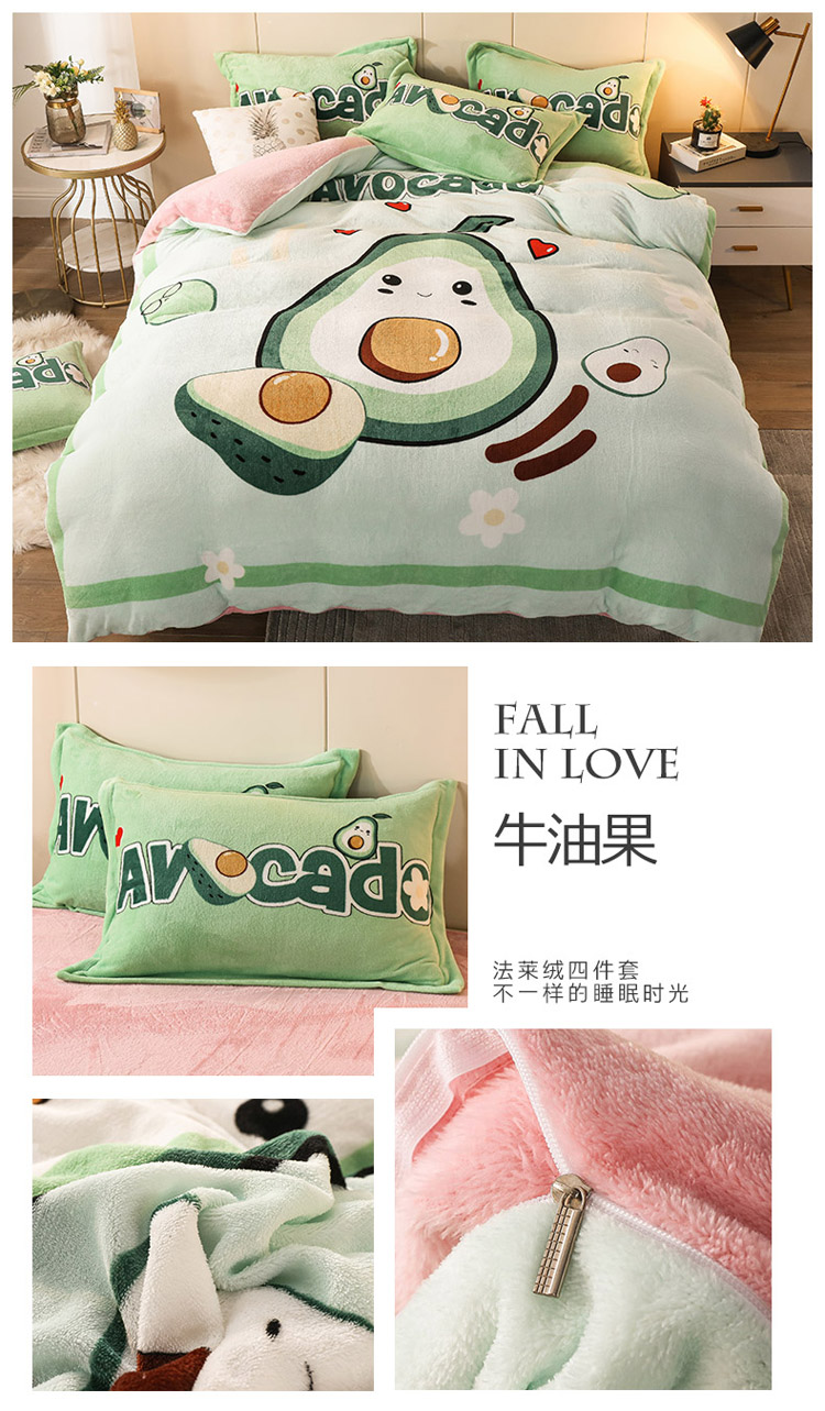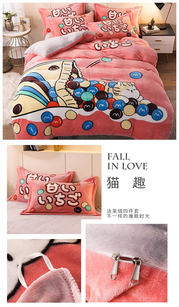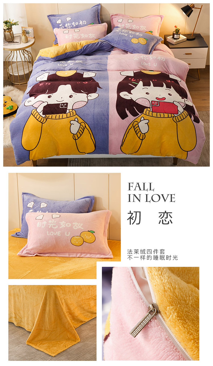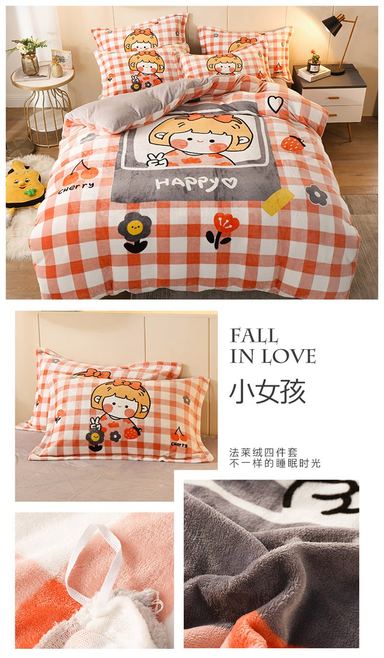 (总)凡客家居 2022秋冬新品加厚大版印花法莱绒四件套学生宿舍三件套