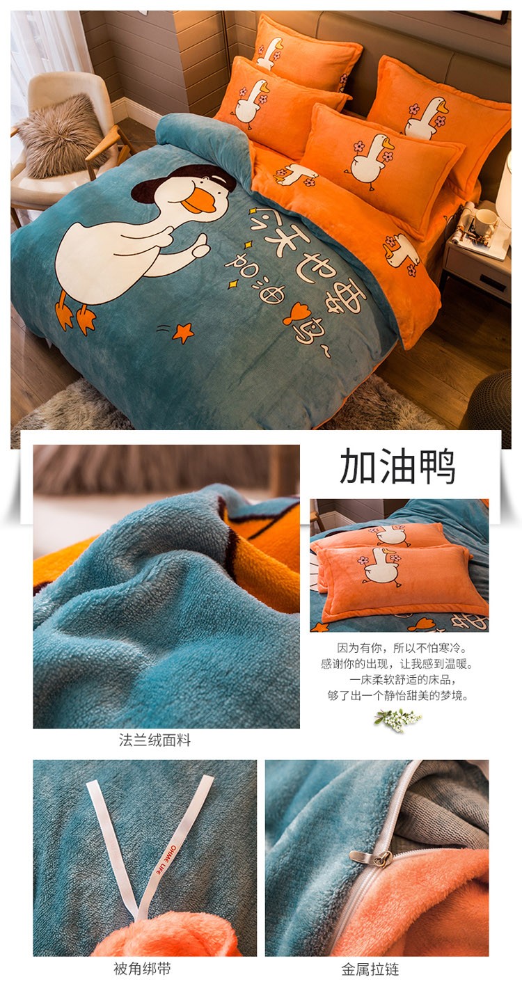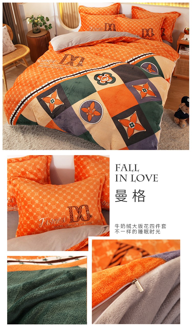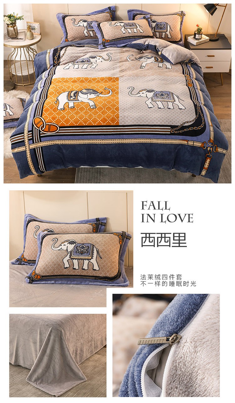 (总)凡客家居 2022秋冬新品加厚大版印花法莱绒四件套学生宿舍三件套
