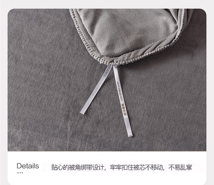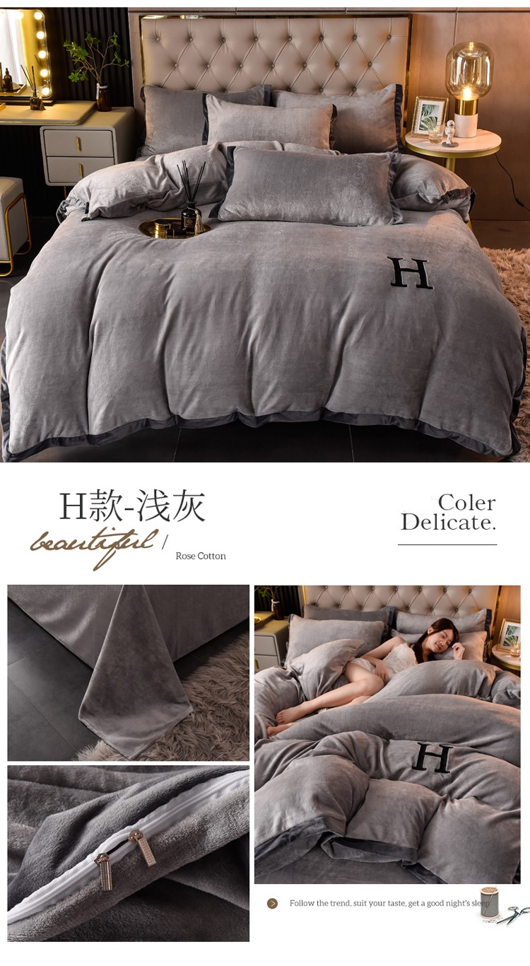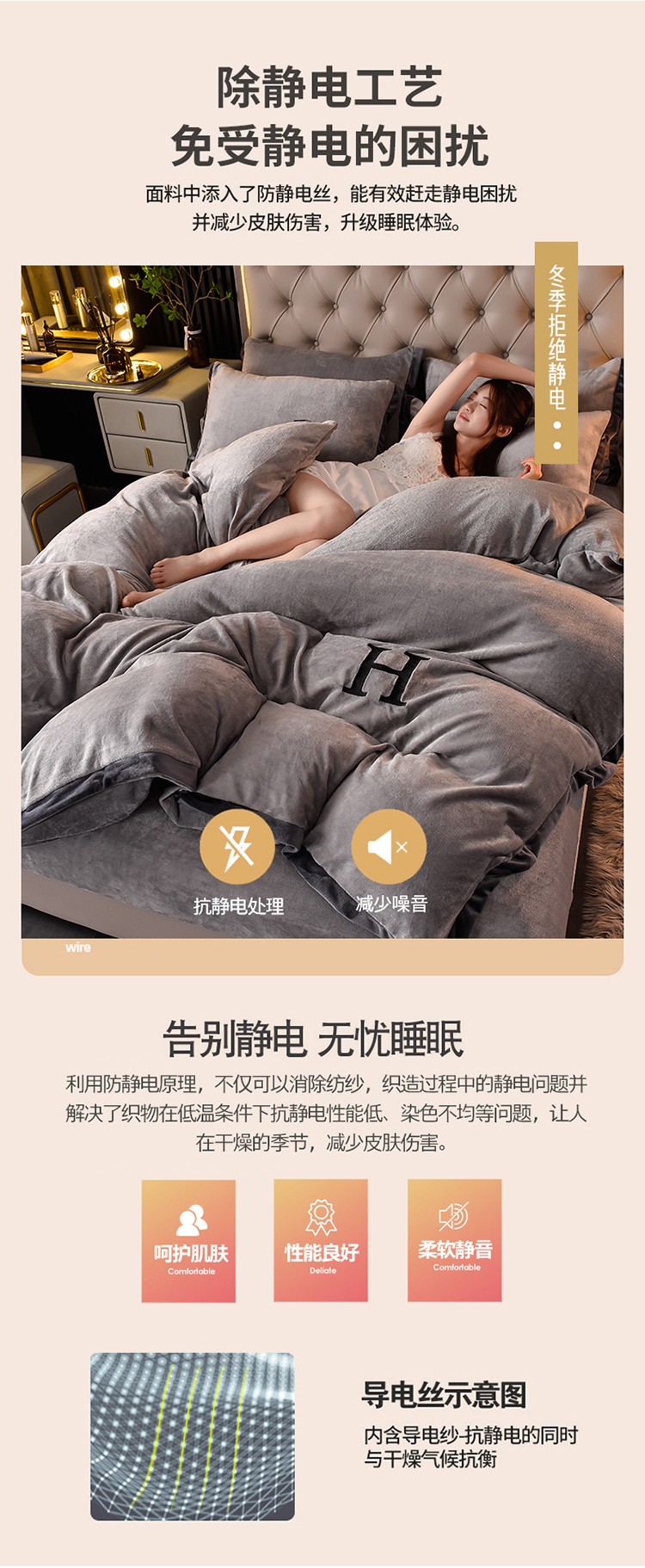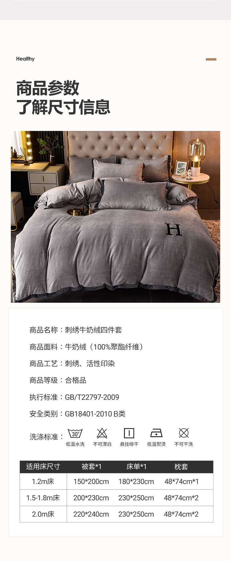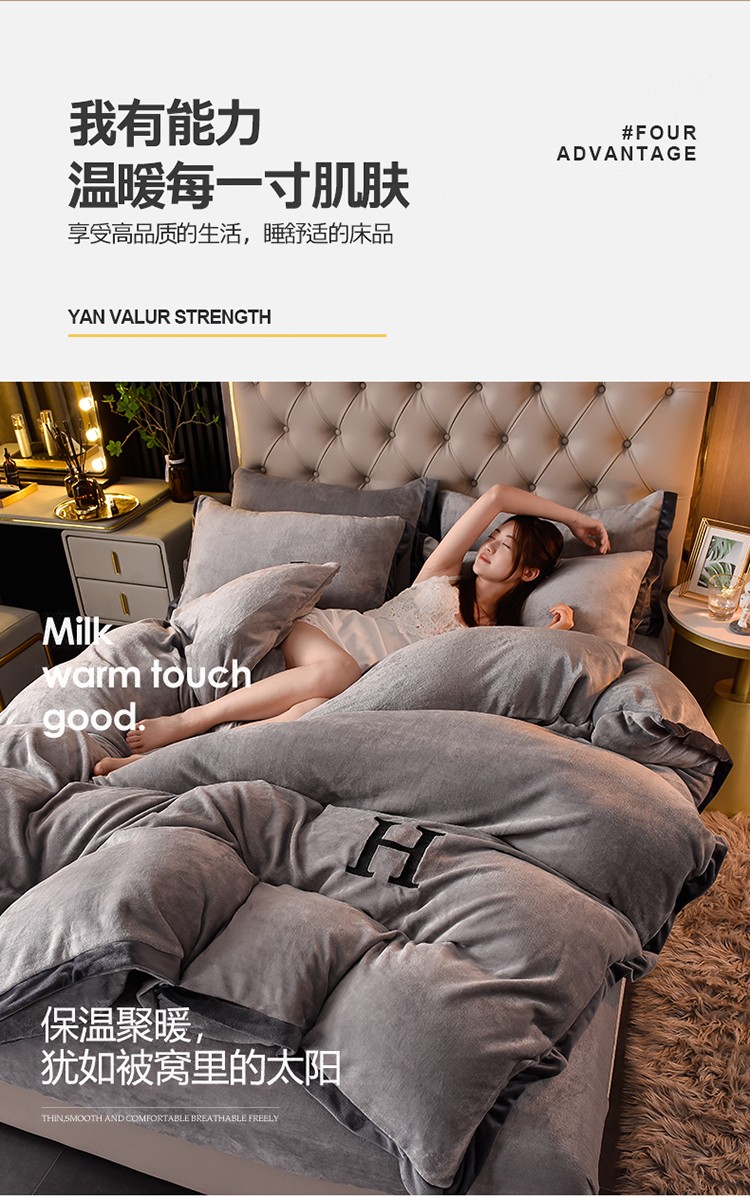 商品名称:简爱家纺2025款高克重牛奶绒拼角工艺四件套 H款-浅灰