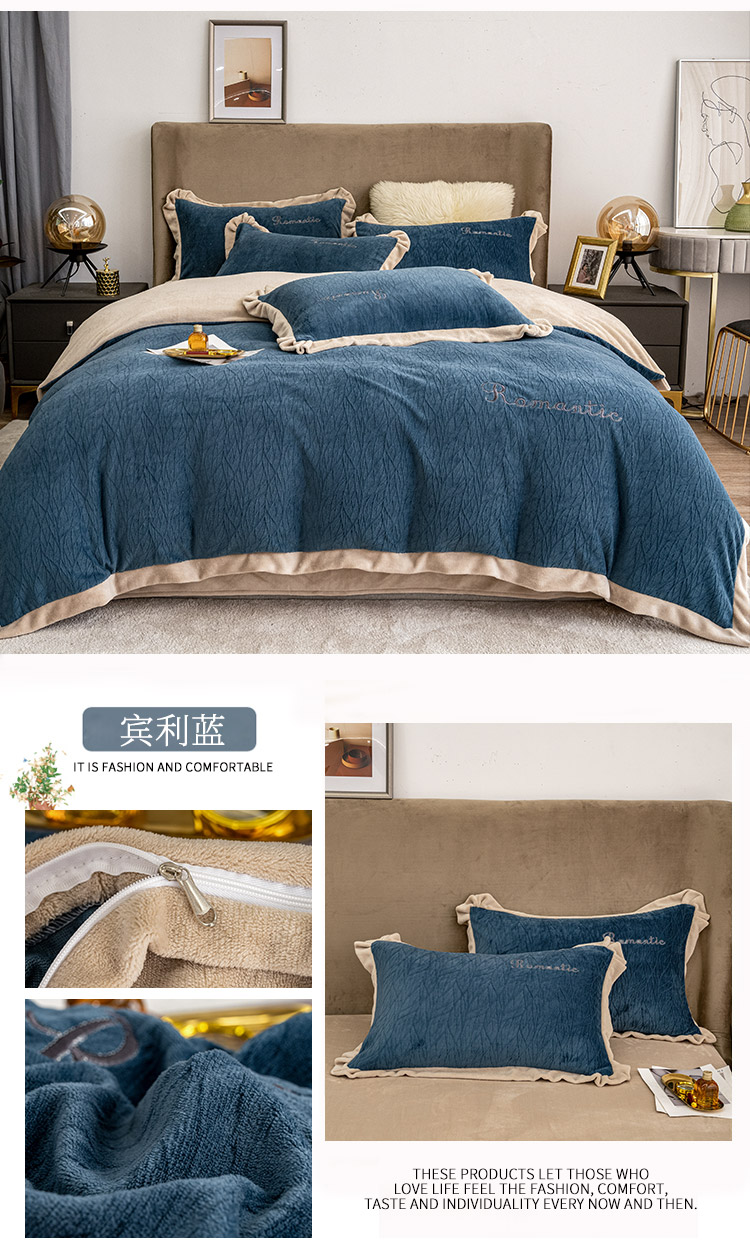 (总)骏腾 2022新款加厚牛奶绒刺绣四件套法莱绒三件套,暖心-宝兰,暖心-豆沙,暖心-灰色,暖心-咖色,暖心-孔雀兰,暖心-孔雀绿,暖心-玫瑰粉,暖心-洒红,暖心-银灰