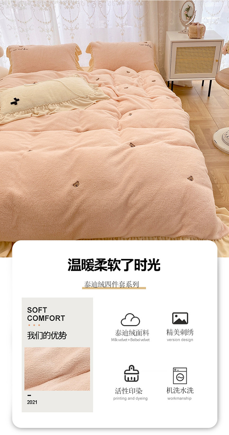 商品名称:玛奇朵 2021秋冬新款泰迪绒系列四件套 泰迪-粉色