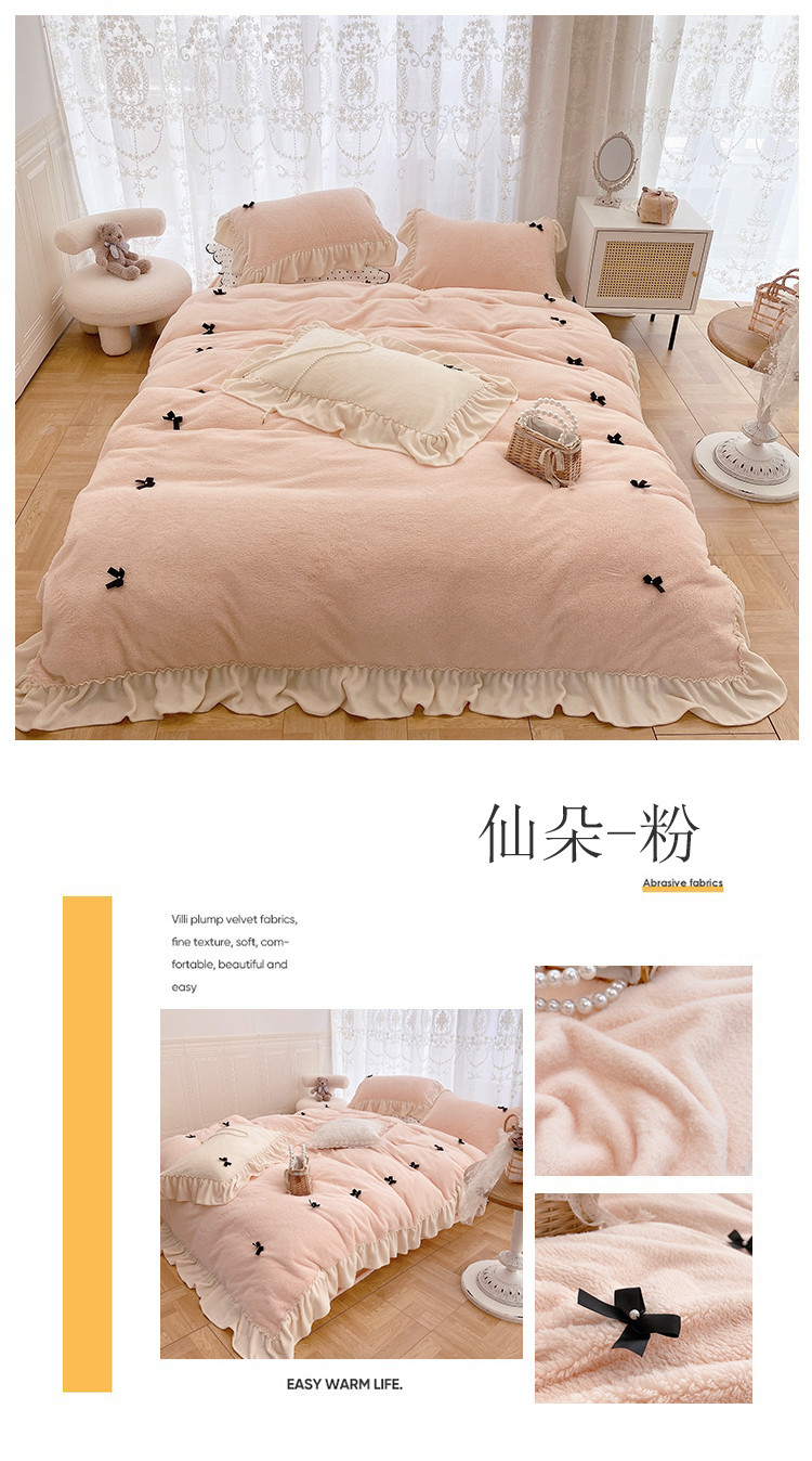 商品名称:玛奇朵 2021秋冬新款240克进口泰迪绒四件套-仙朵 粉