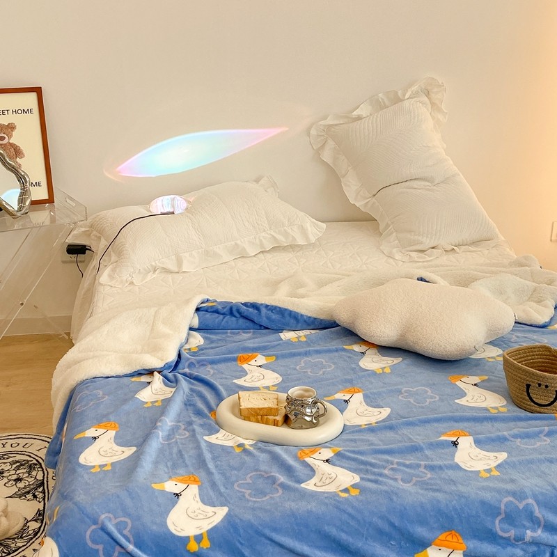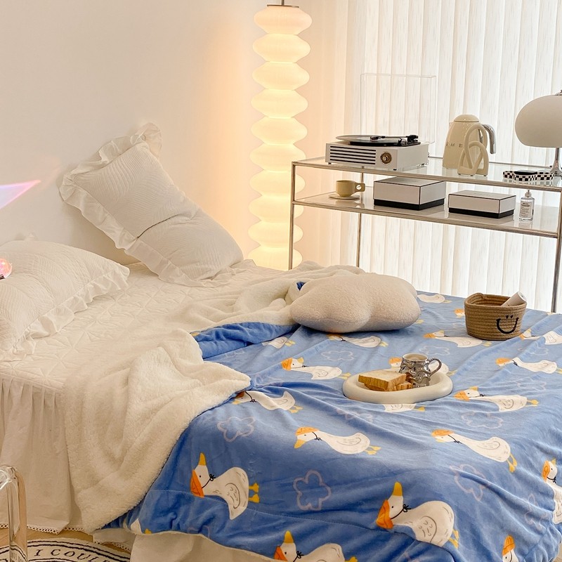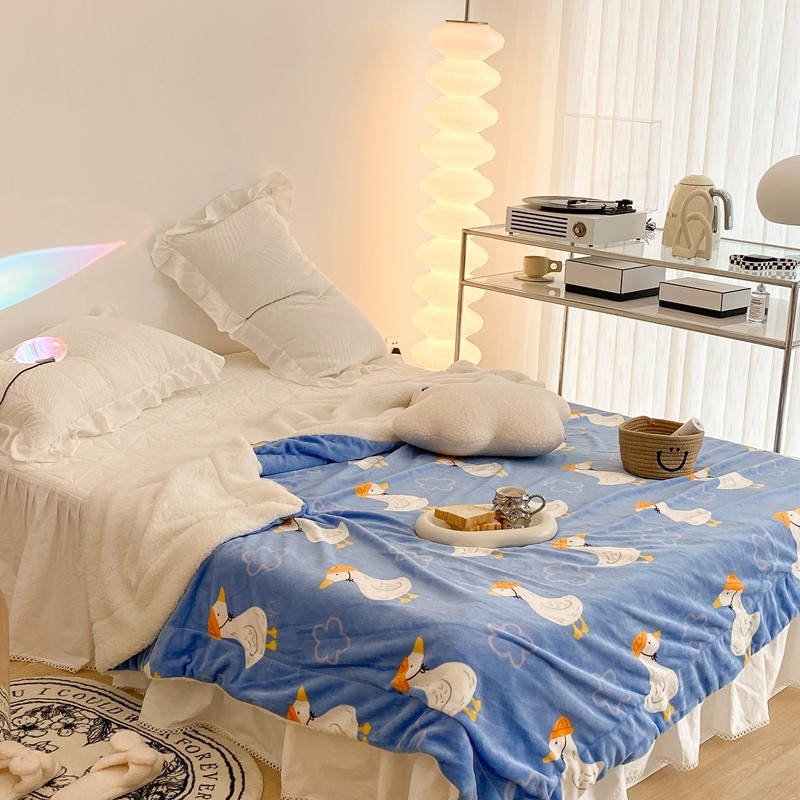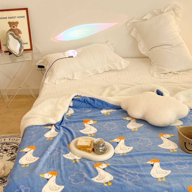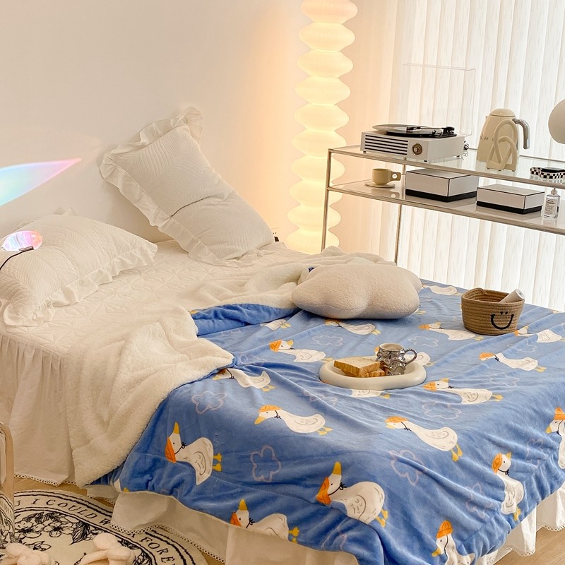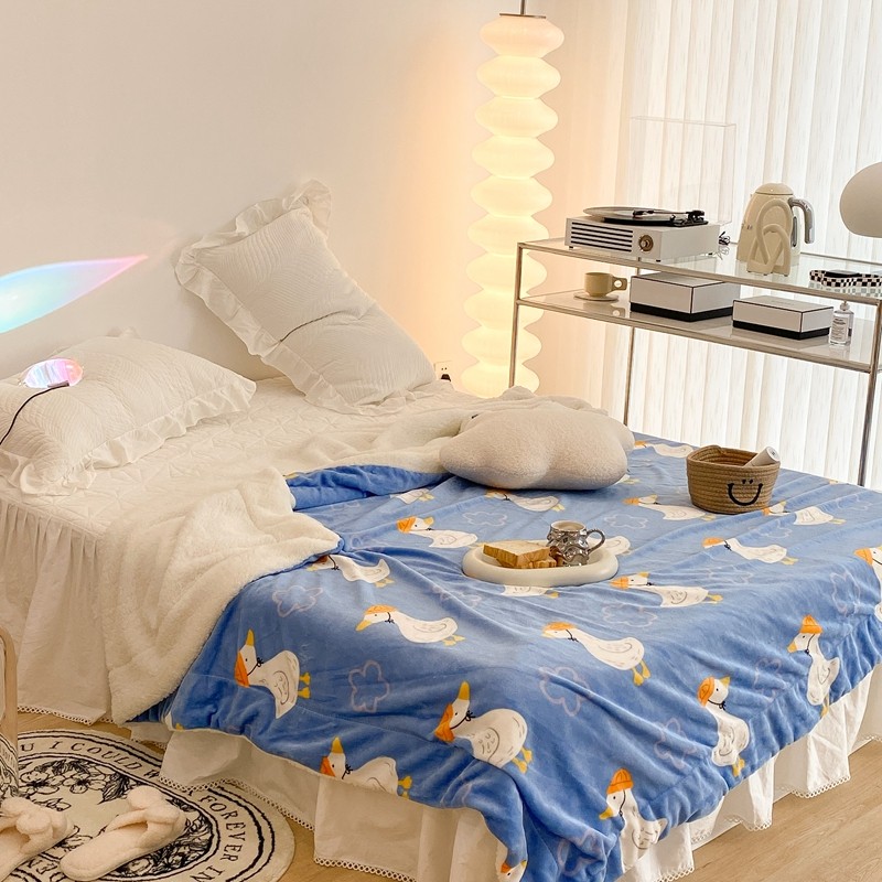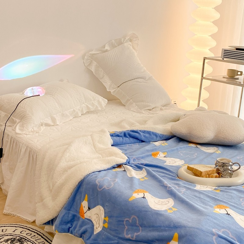 昔可家纺 2021新款牛奶羊羔绒印花毯 花朵鸭