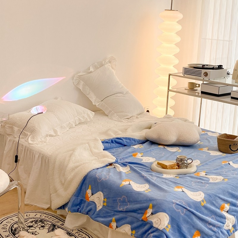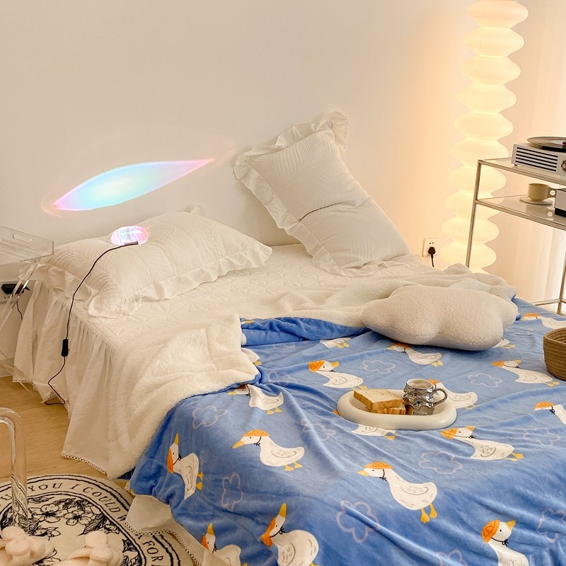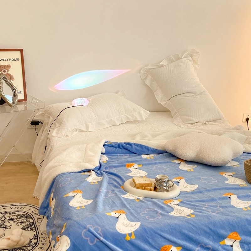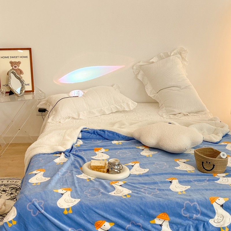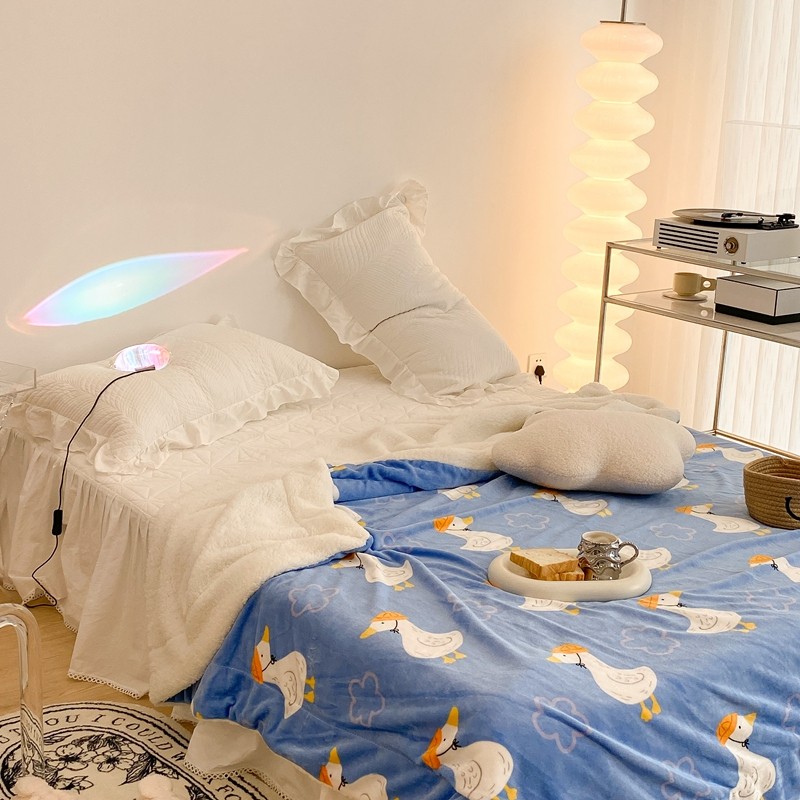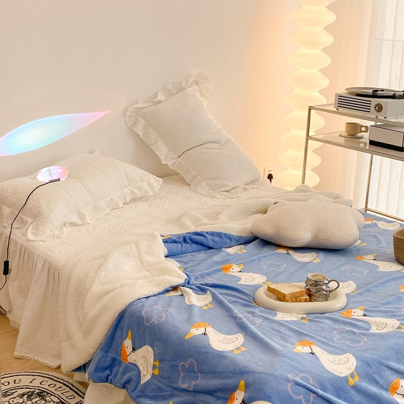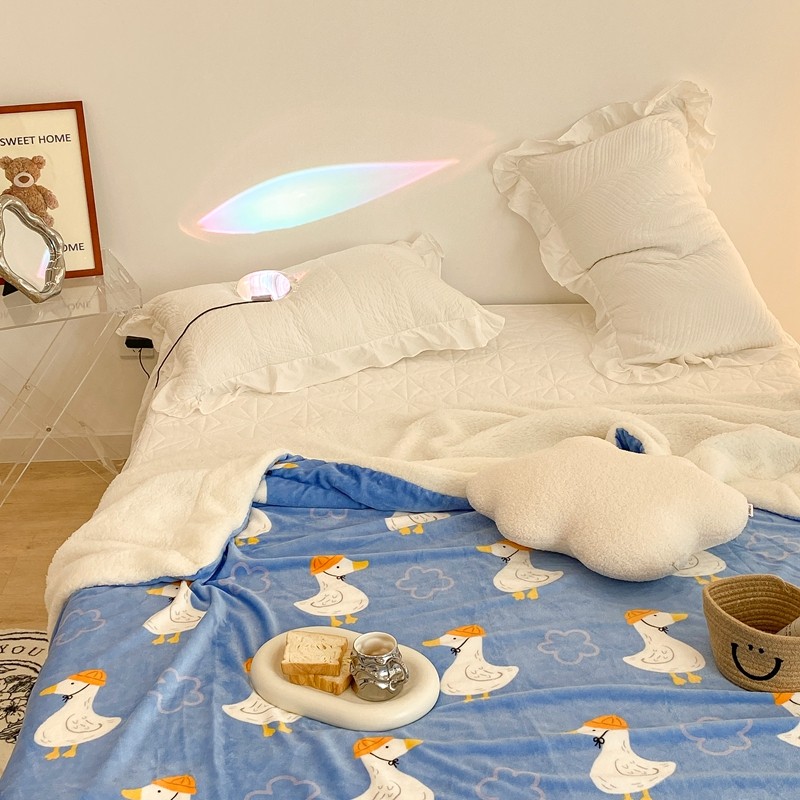 昔可家纺 2021新款牛奶羊羔绒印花毯 花朵鸭
