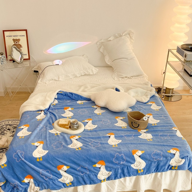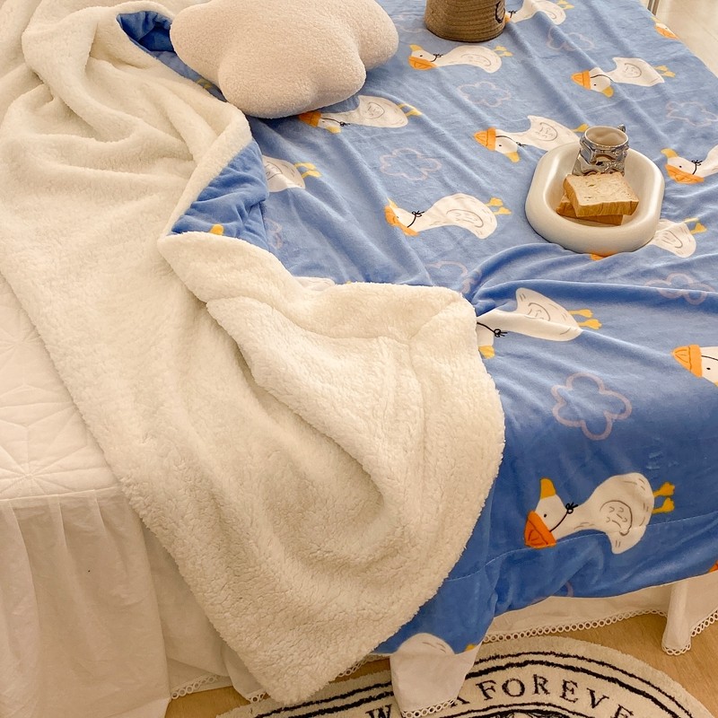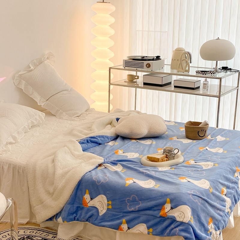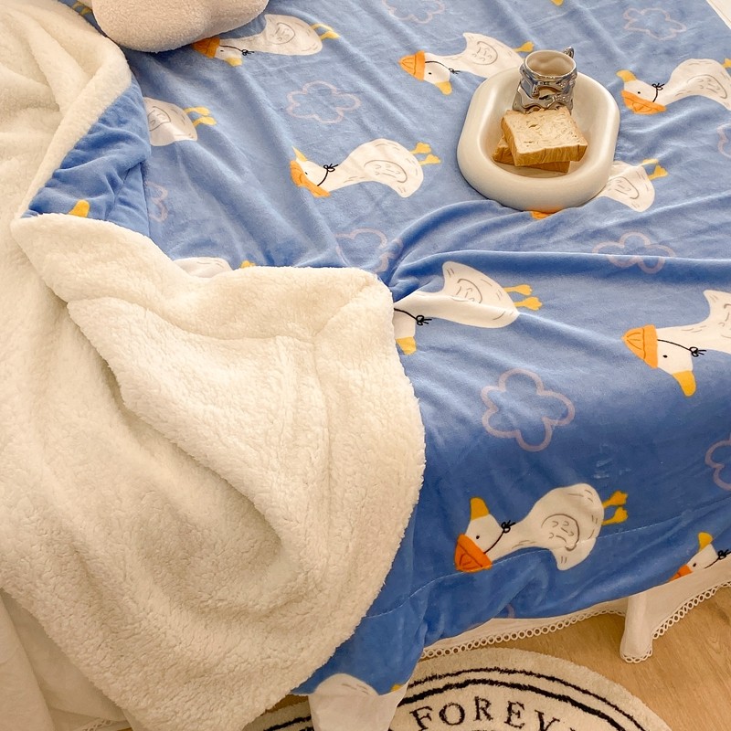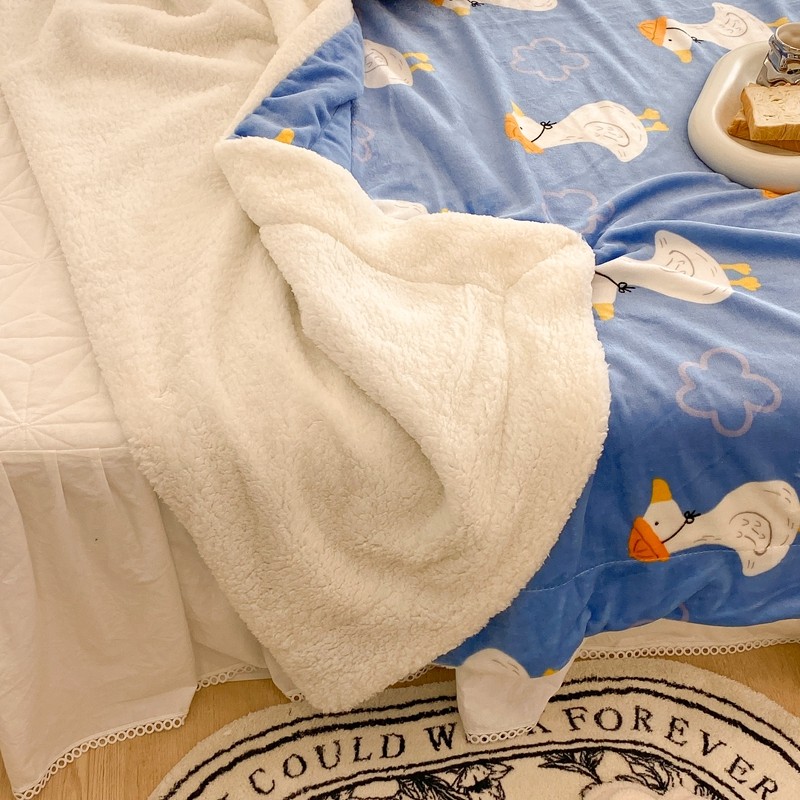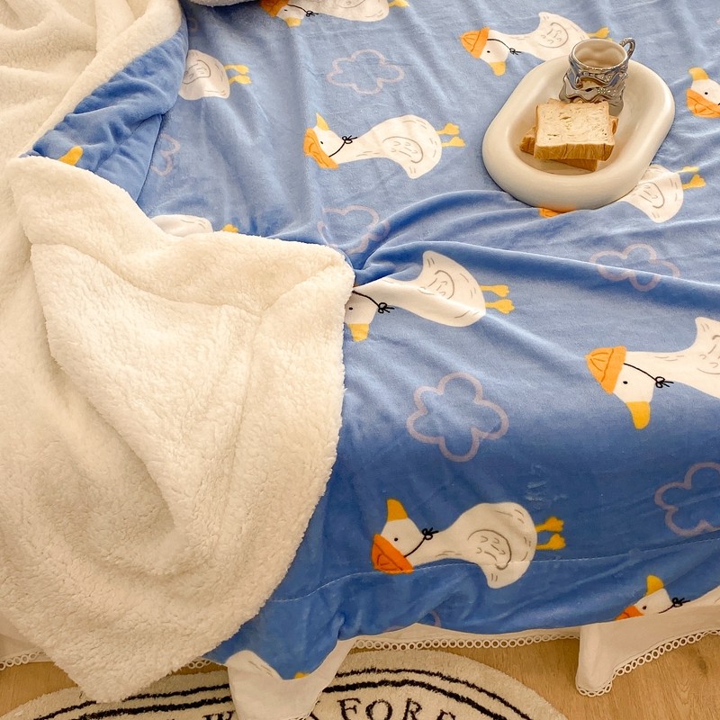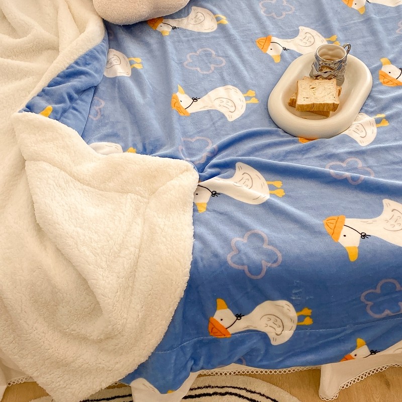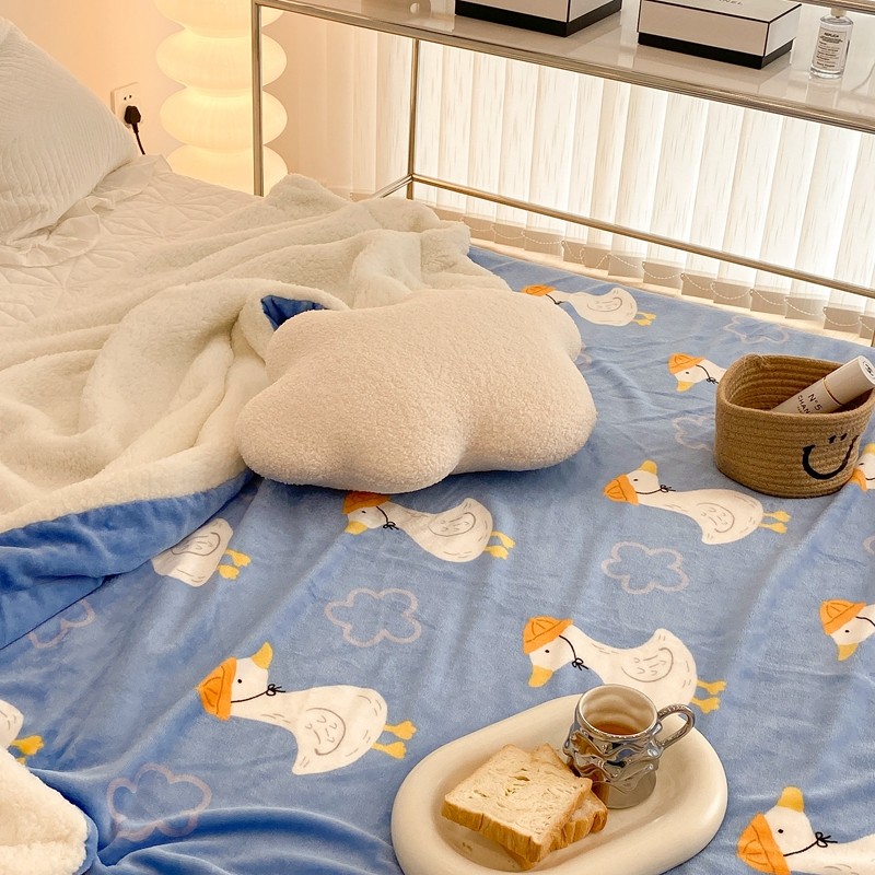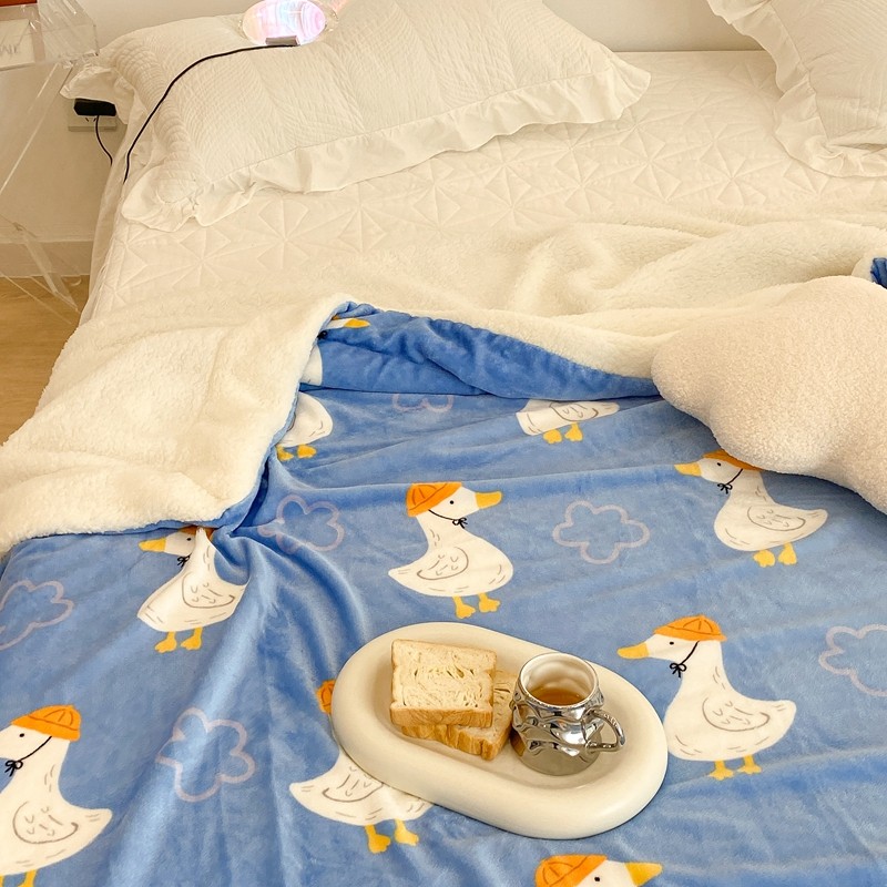 商品名称:昔可家纺 2021新款牛奶羊羔绒印花毯 花朵鸭