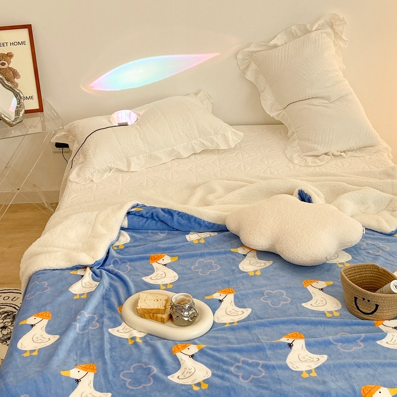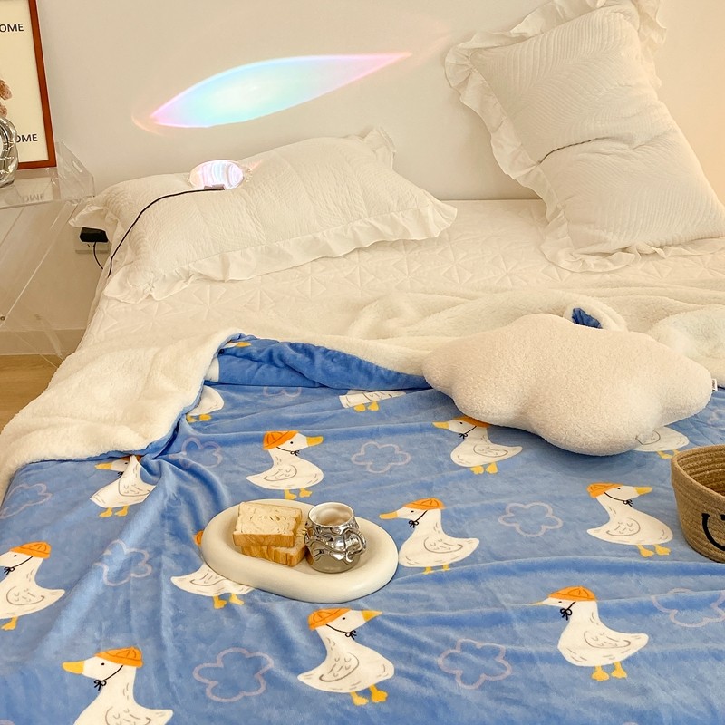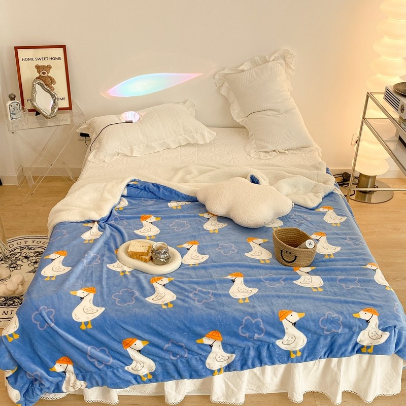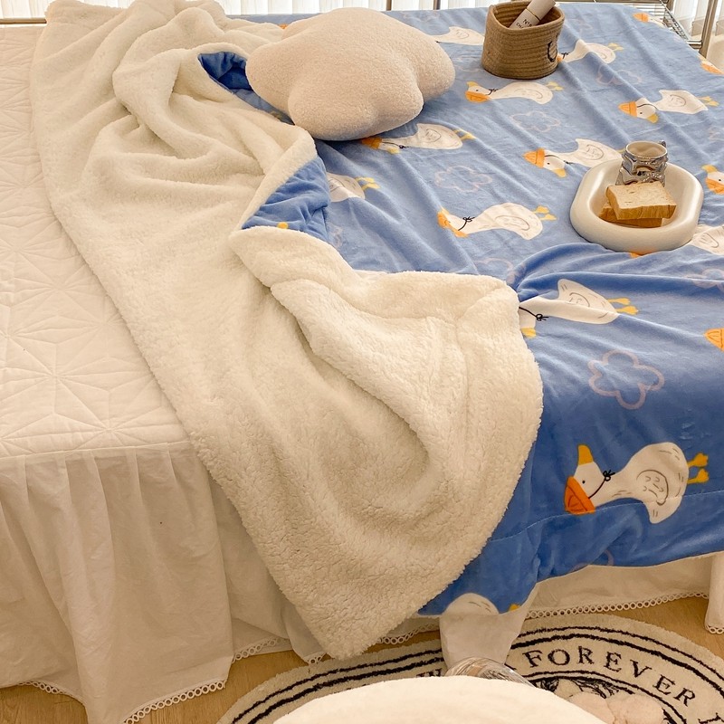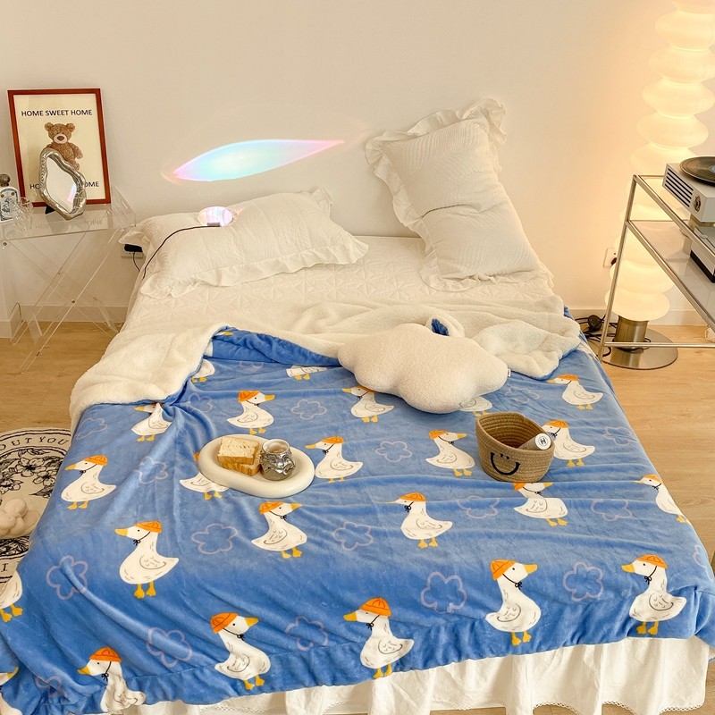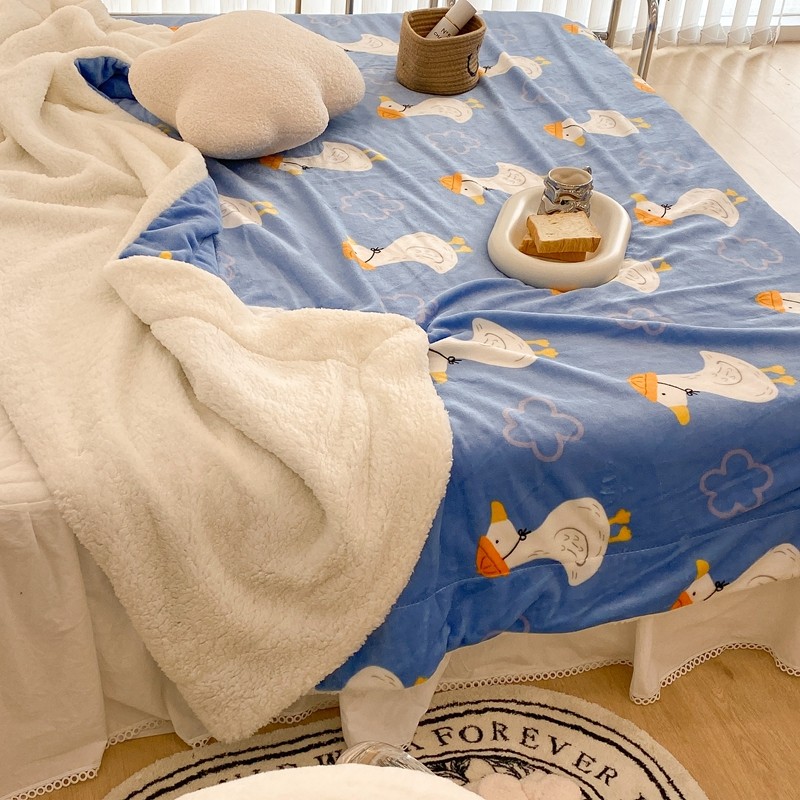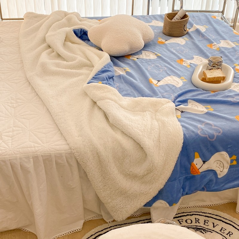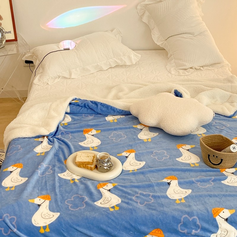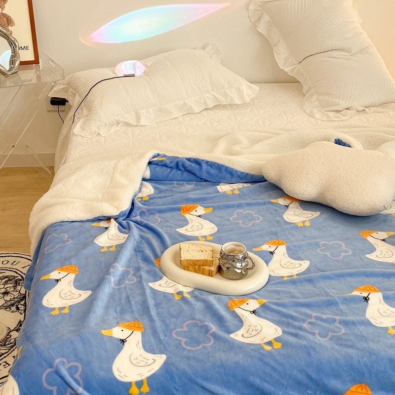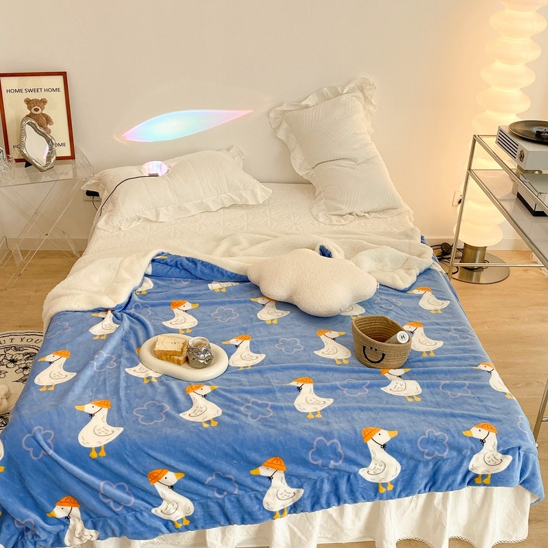 商品名称:昔可家纺 2021新款牛奶羊羔绒印花毯 花朵鸭