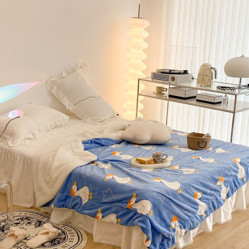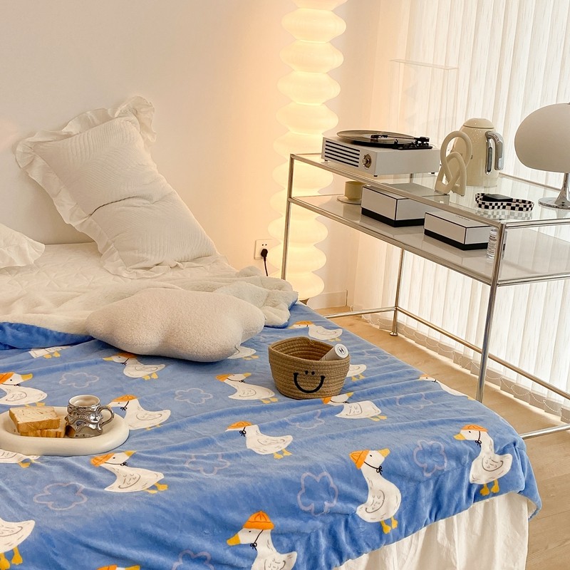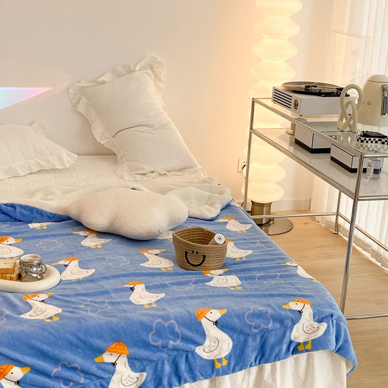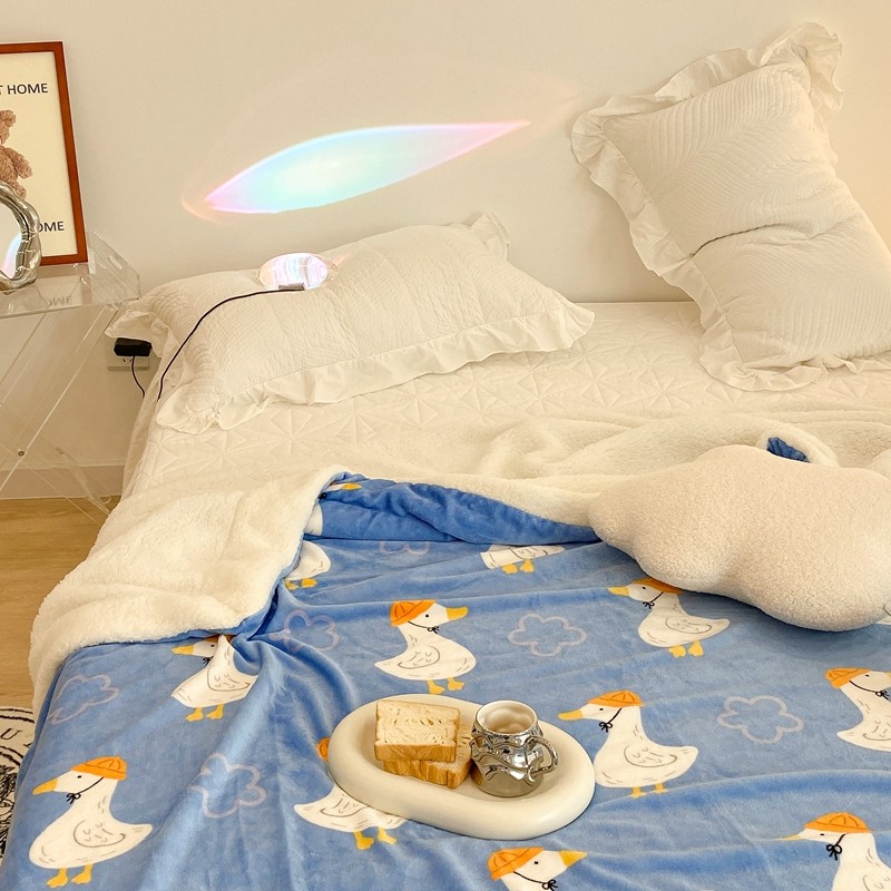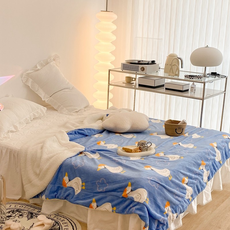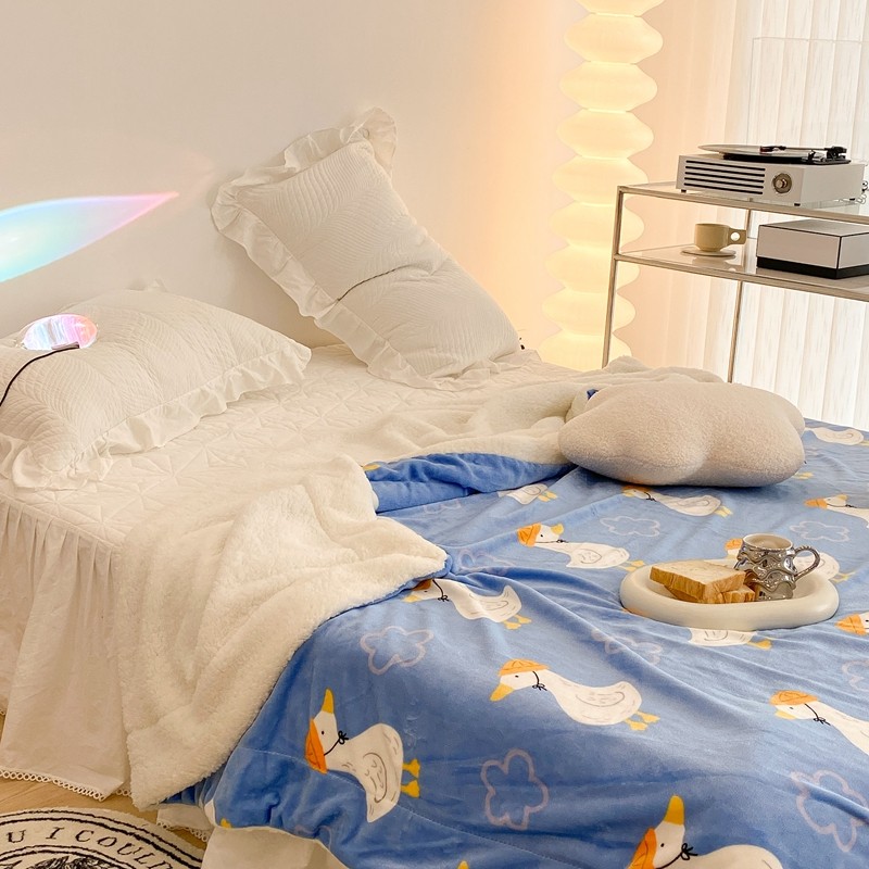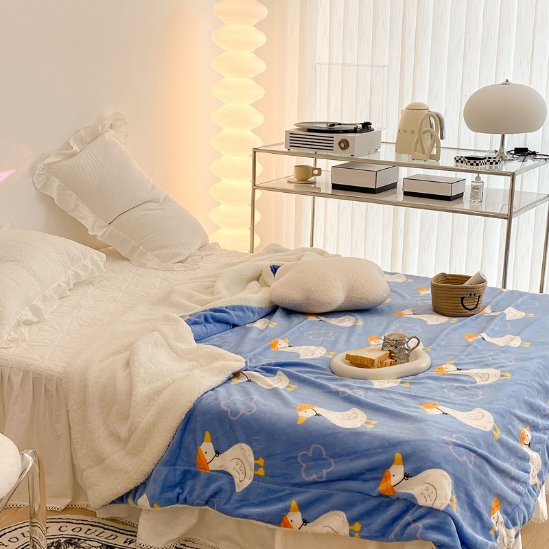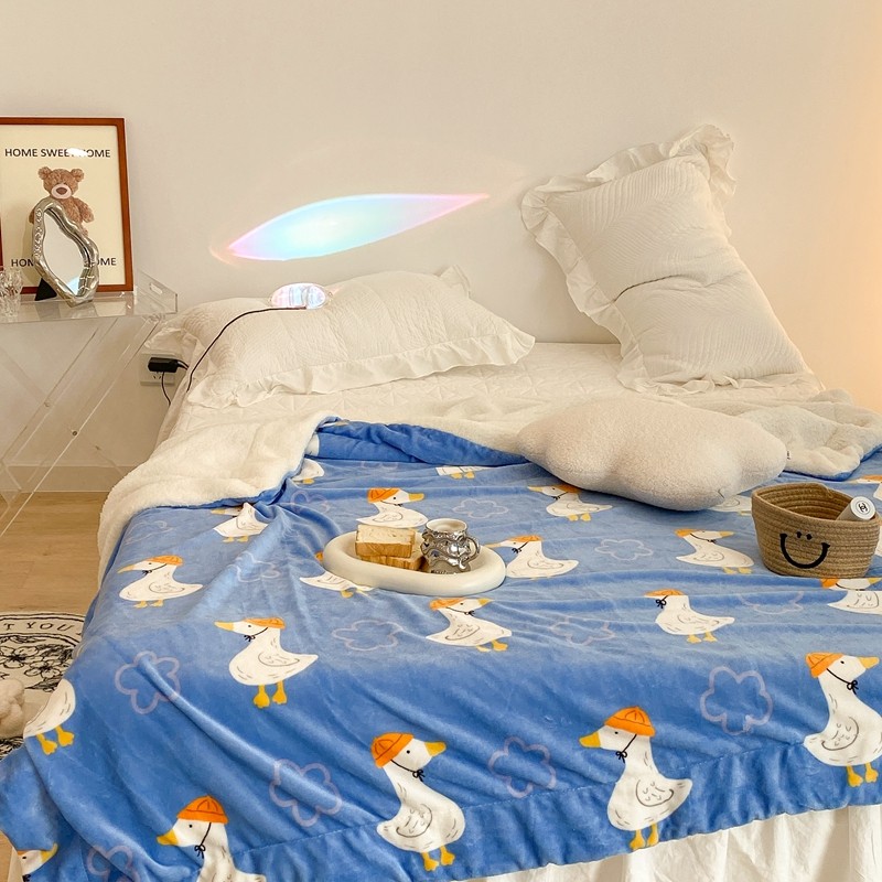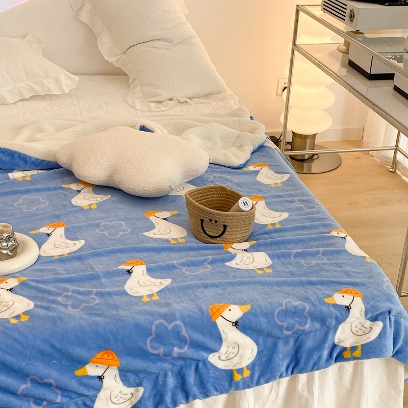 商品名称:昔可家纺 2021新款牛奶羊羔绒印花毯 花朵鸭