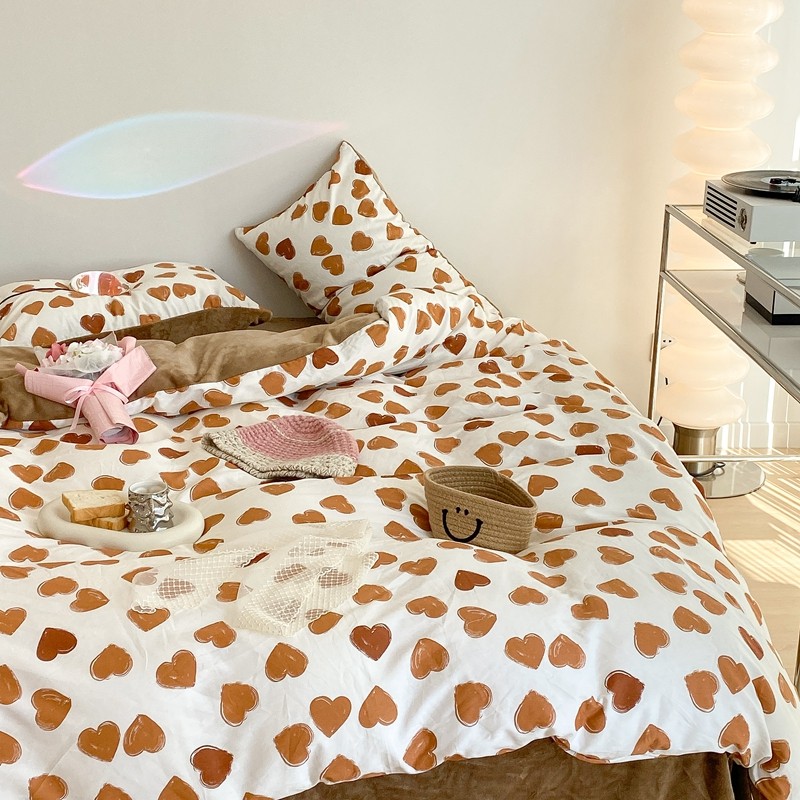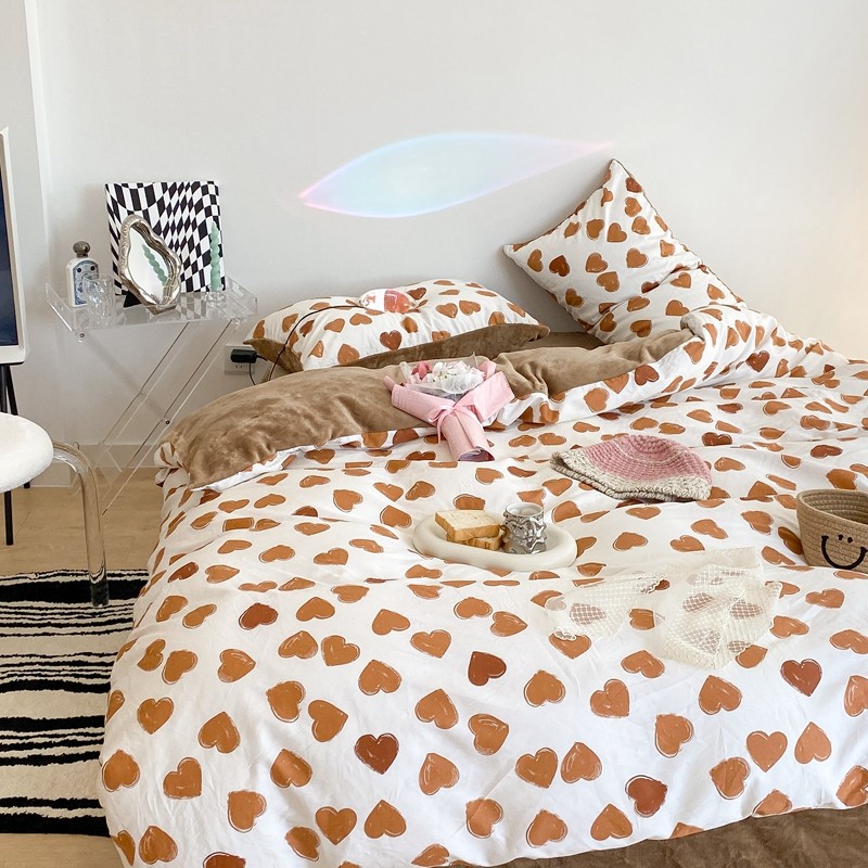 商品名称:昔可家纺 2021新款棉加牛奶绒四件套 咖色小爱心