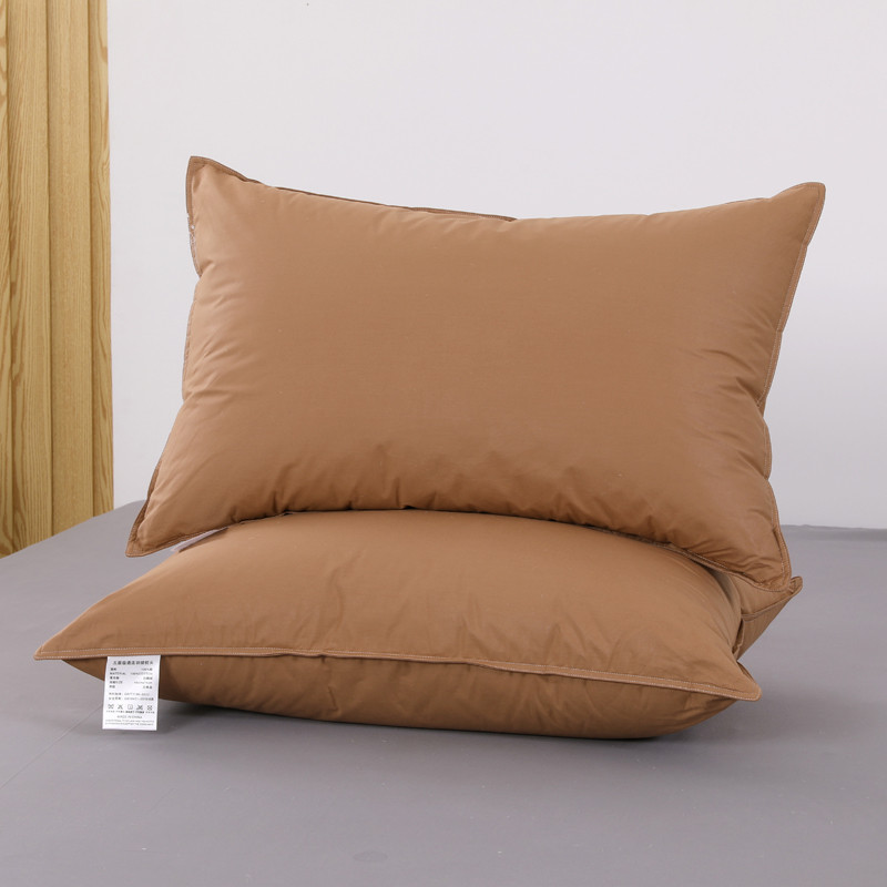 羽仙子2023新品爆款 全棉双针工艺羽绒枕 鹅绒枕头枕芯咖色