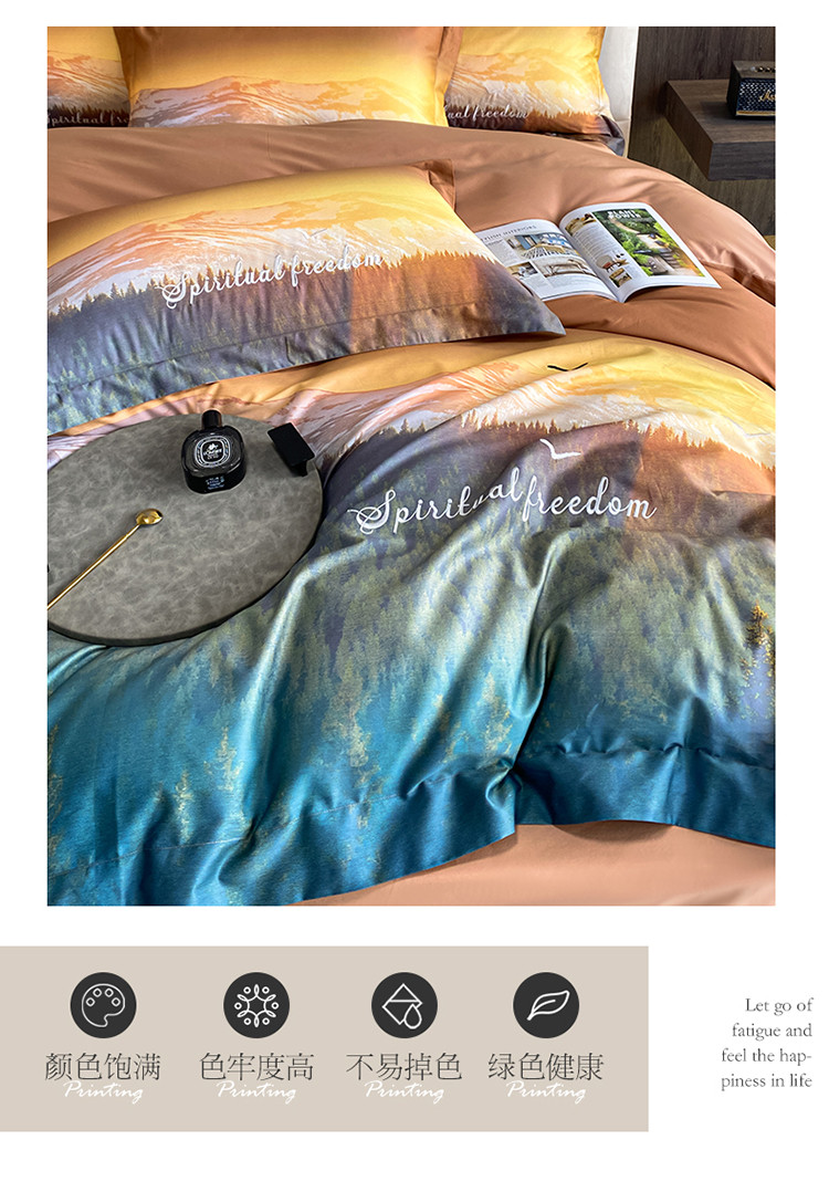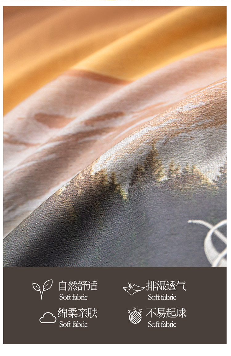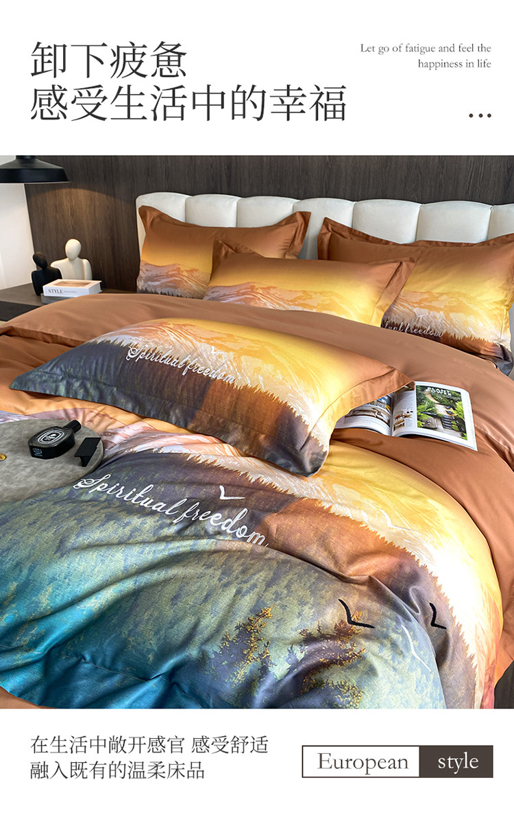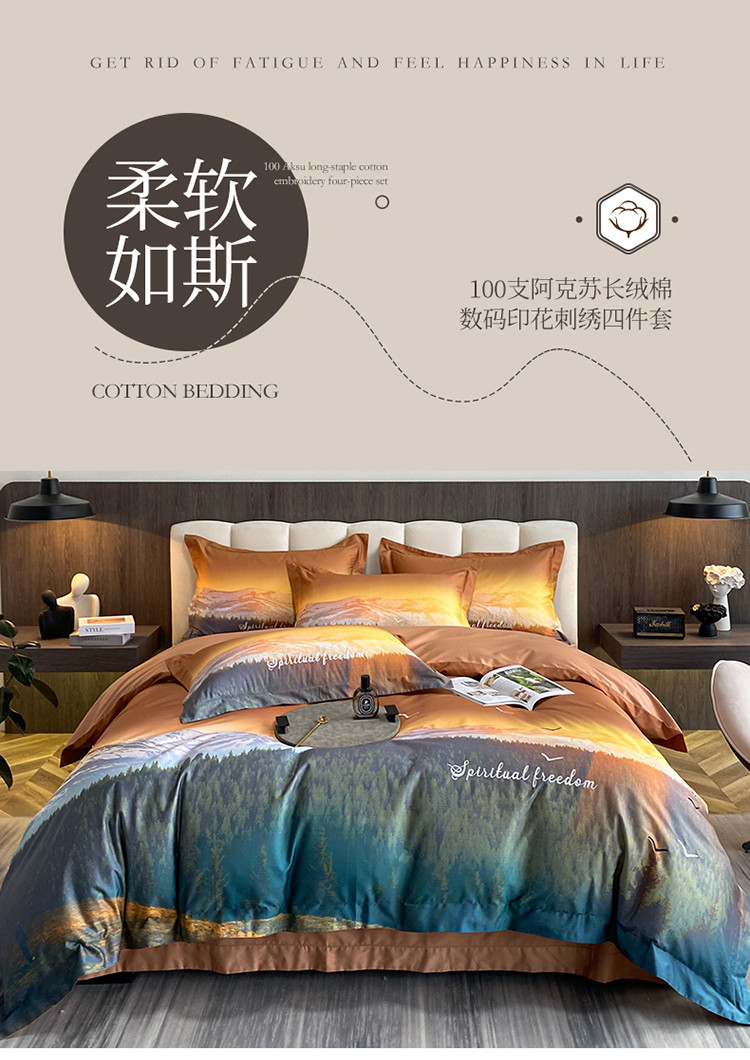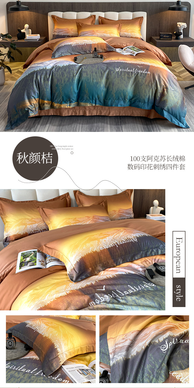 魅都100阿克苏长绒棉数码印花四件套 秋颜桔
