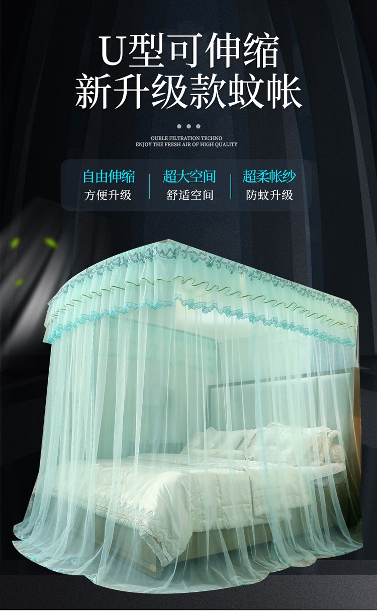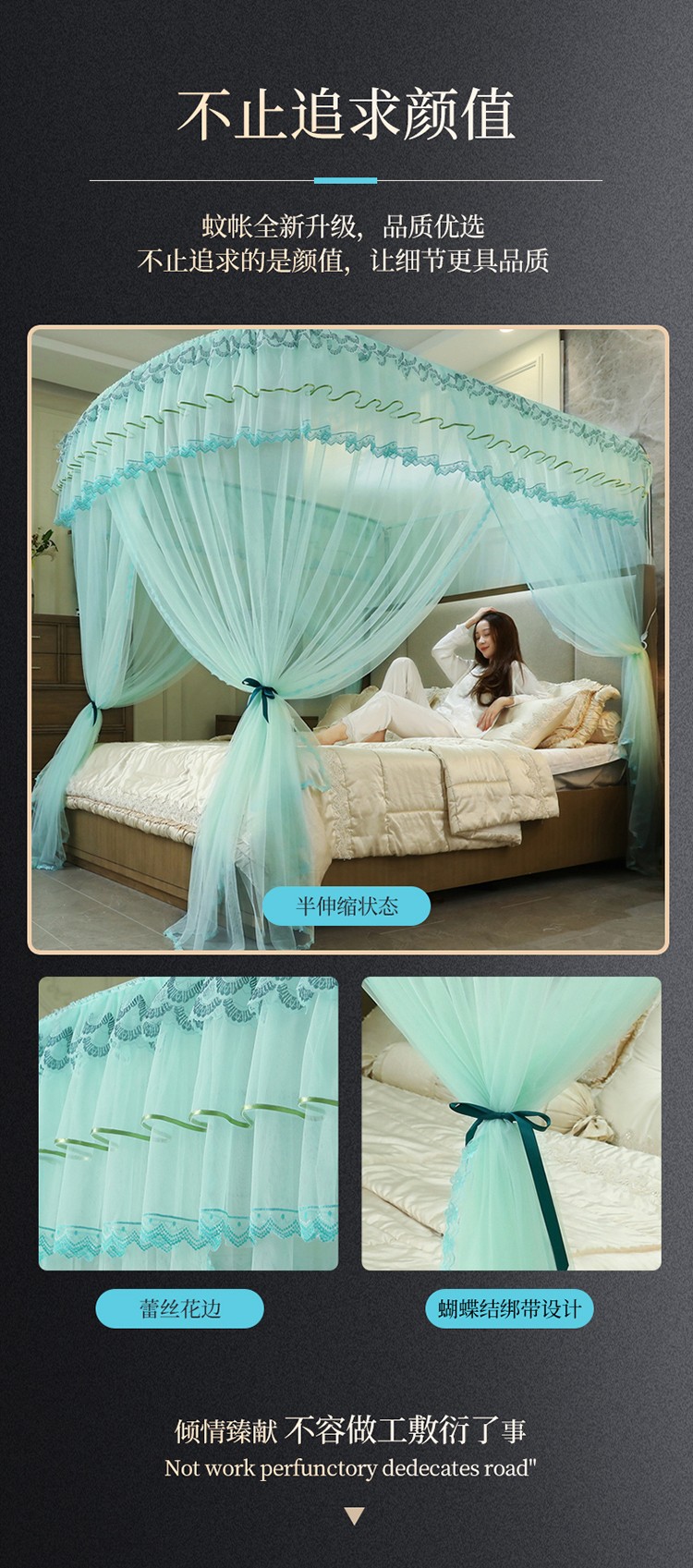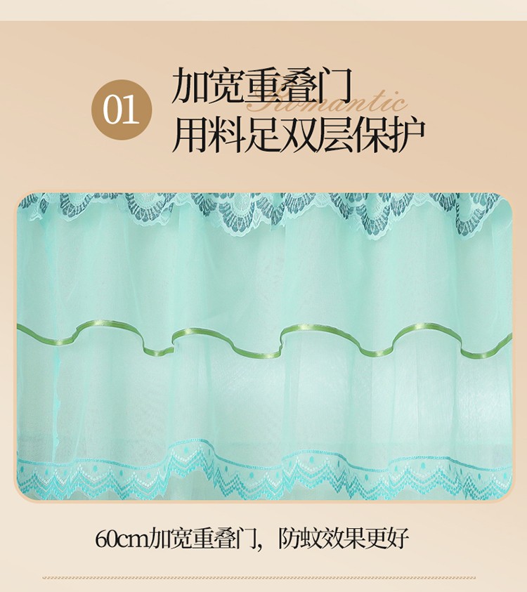 (总)夏彩 2025新款蕾丝U型防摔坐床蚊帐-88630,绿雅灰,藕玉色,香槟色