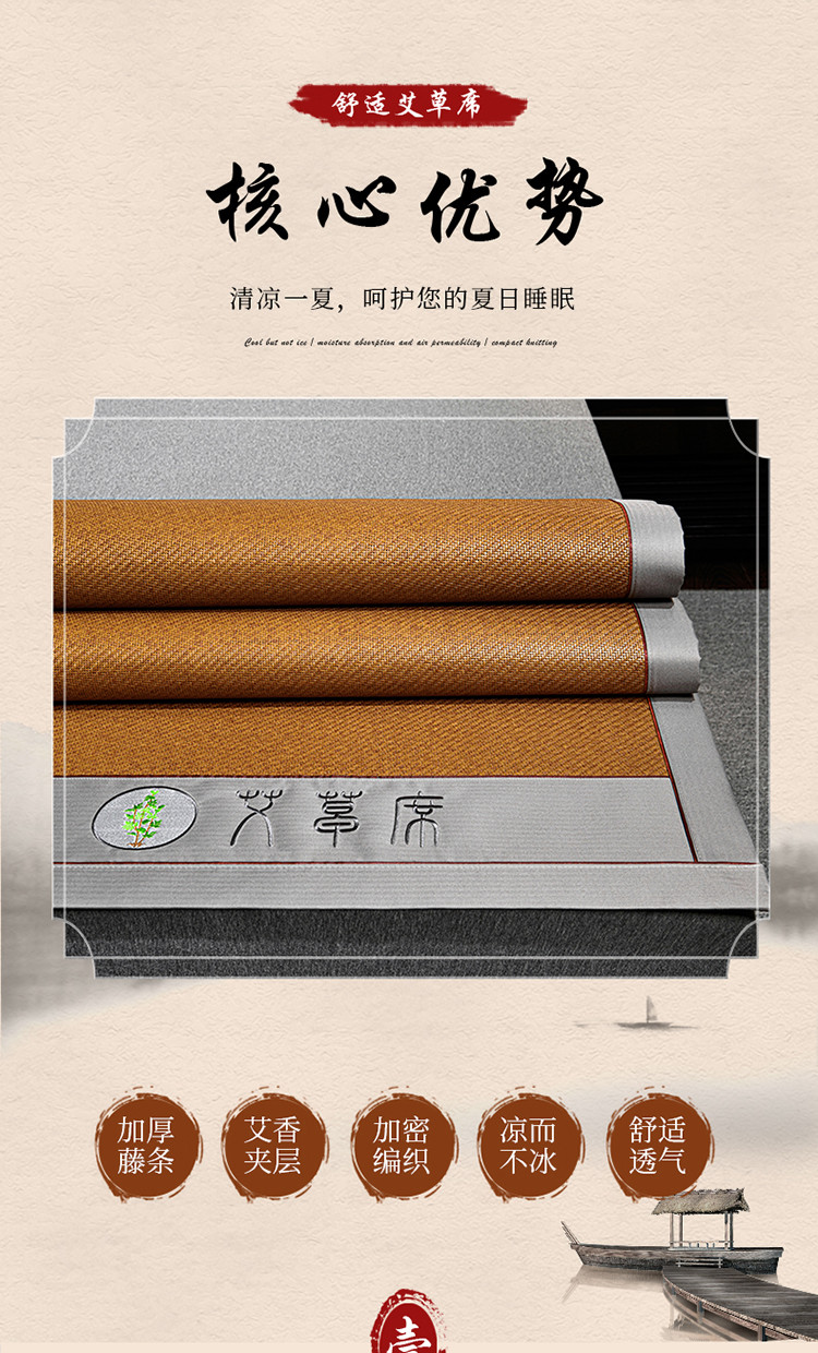 商品名称:小牛席业 2022新款艾草养生席系列 艾草席-红棕