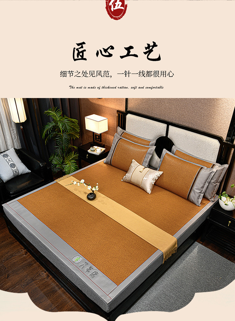 2023新款经典全藤席面艾草养生席-床笠款冰藤席冰丝席竹席空调席凉席,冰蓝,黑咖,红棕,黄藤,灰色,墨绿,浅咖,亚麻