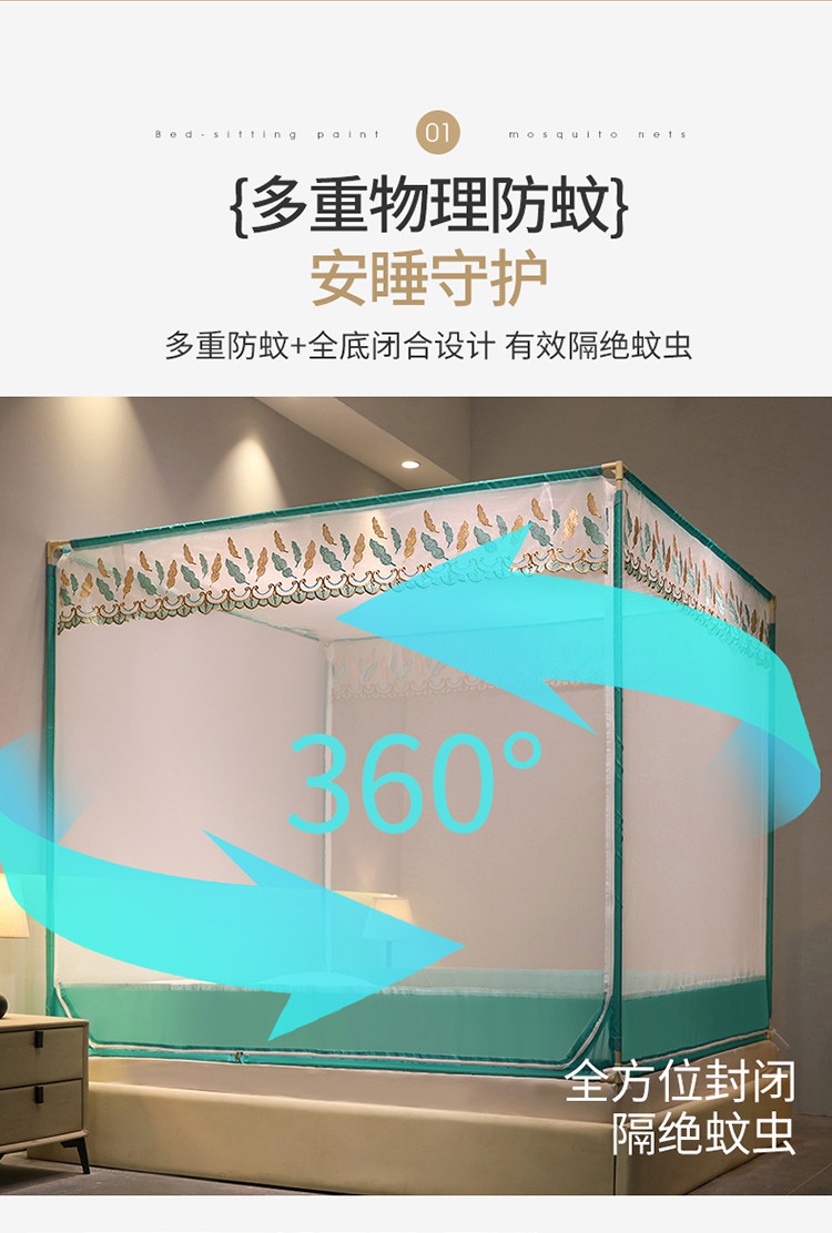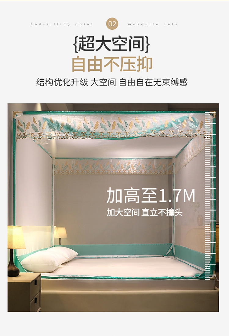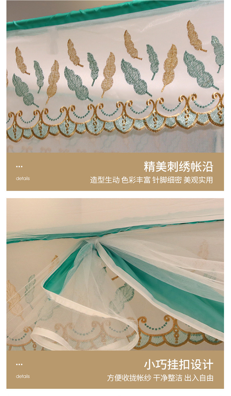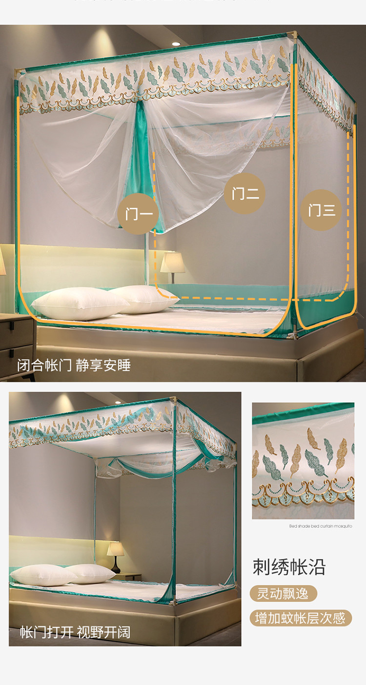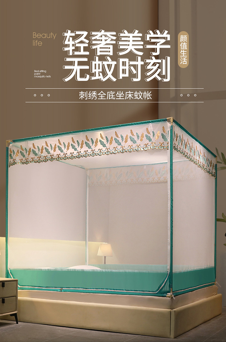 (总)博诺蚊帐 2022新款全底防摔坐床烤漆刺绣蚊帐,福黛墨绿,福黛浅驼,福黛深红,飘羽咖啡,飘羽墨绿,飘羽氧气绿