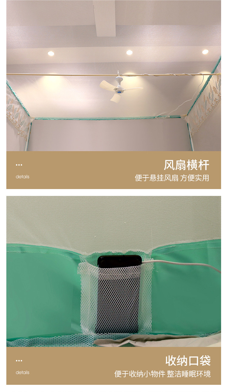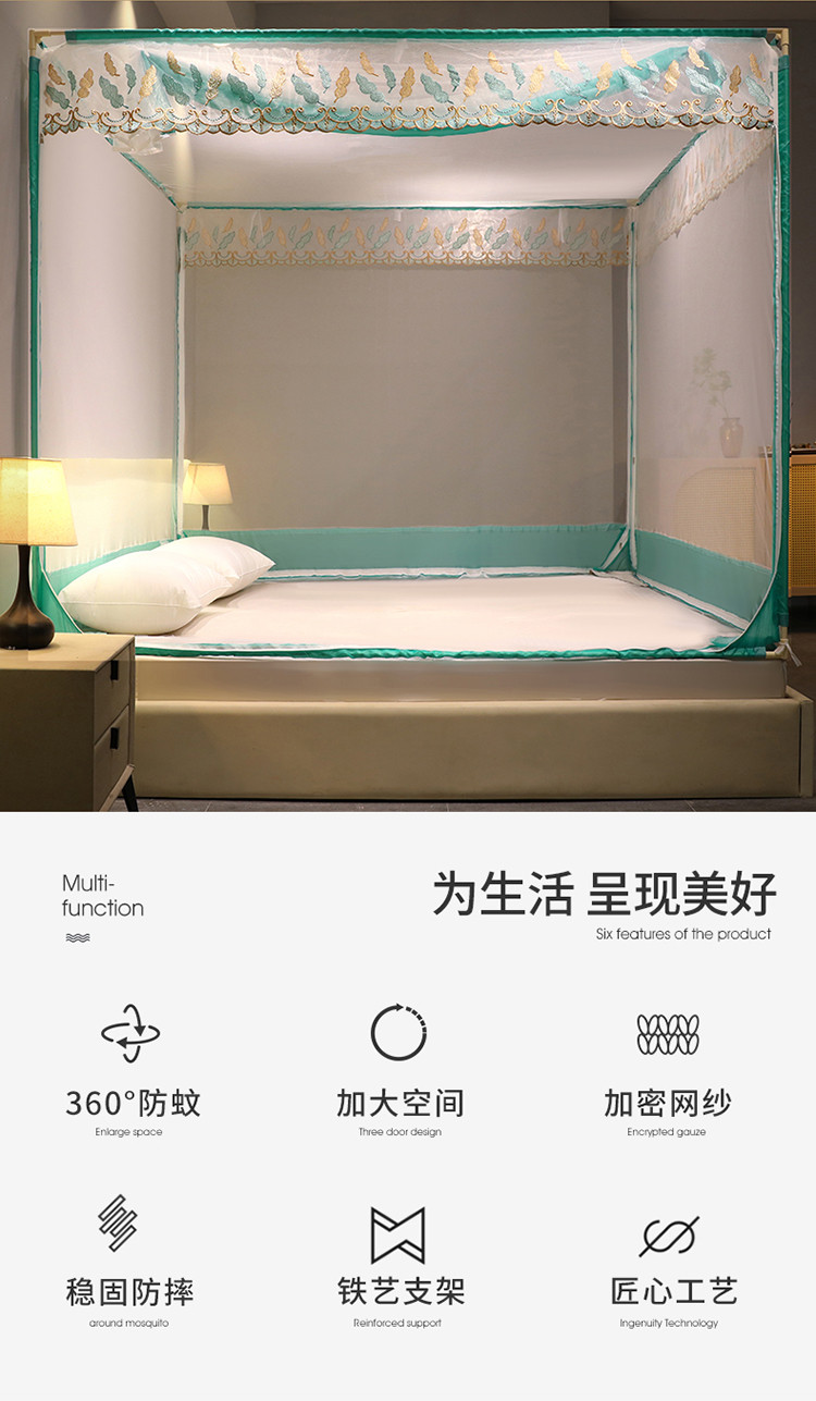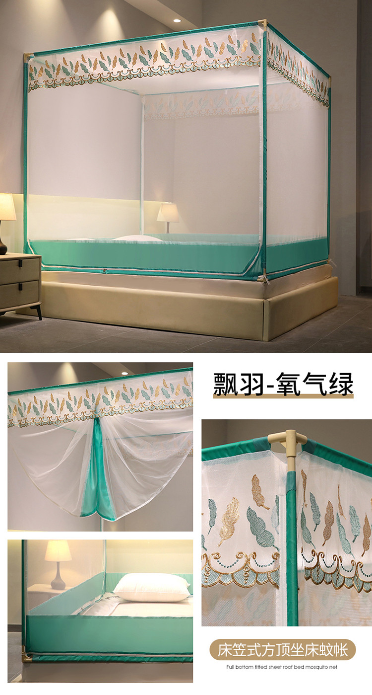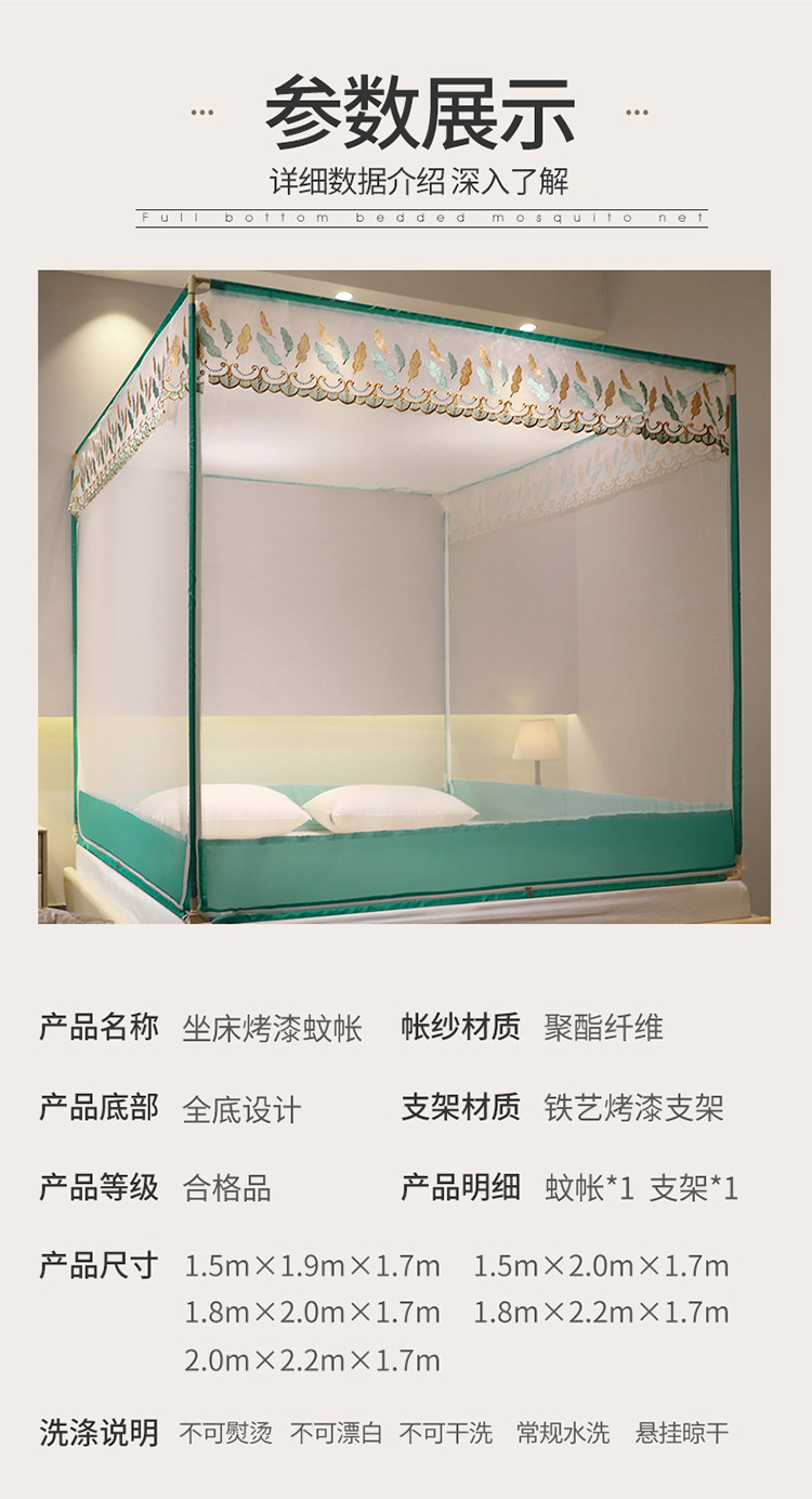 商品名称:博诺蚊帐 2022新款全底防摔坐床烤漆刺绣蚊帐 飘羽氧气绿