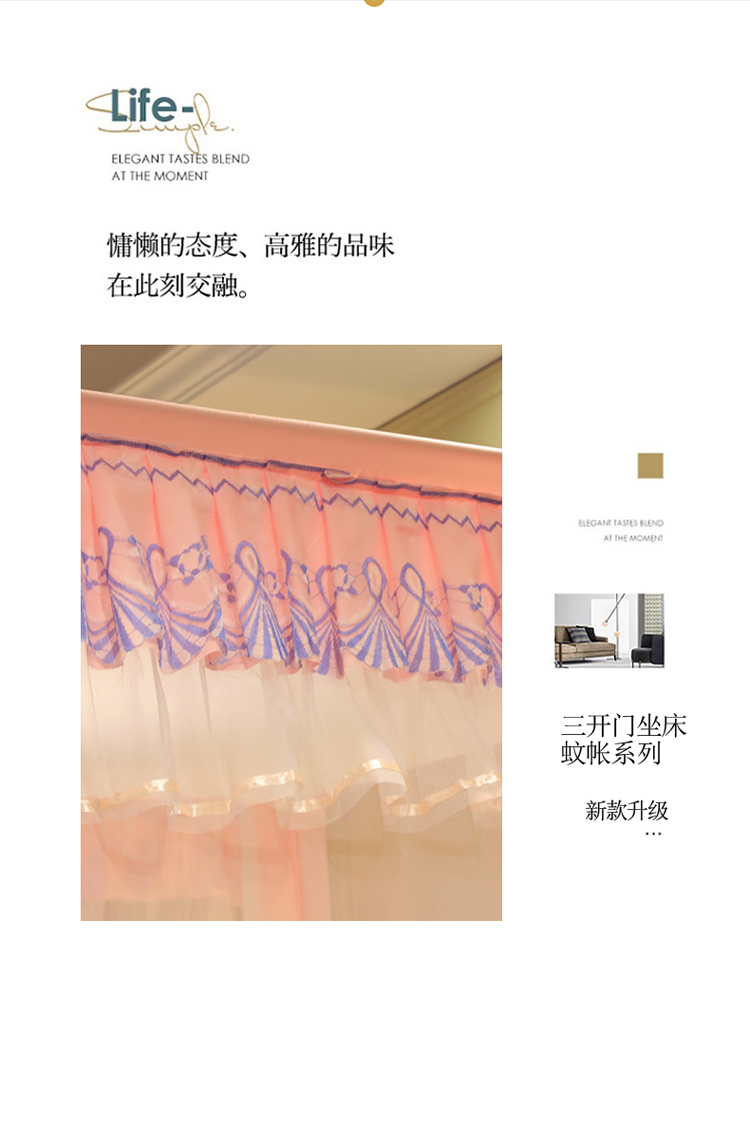 当前位置: 91家纺网 > 商品网购 > 床上用品 > 蚊帐 > 坐床式蚊帐 > 迷仙巢 2022新款三开门坐床蚊帐-B20相思 相思-玉色