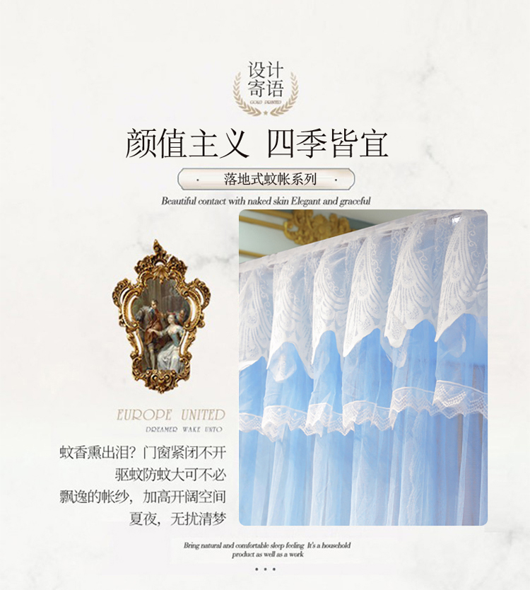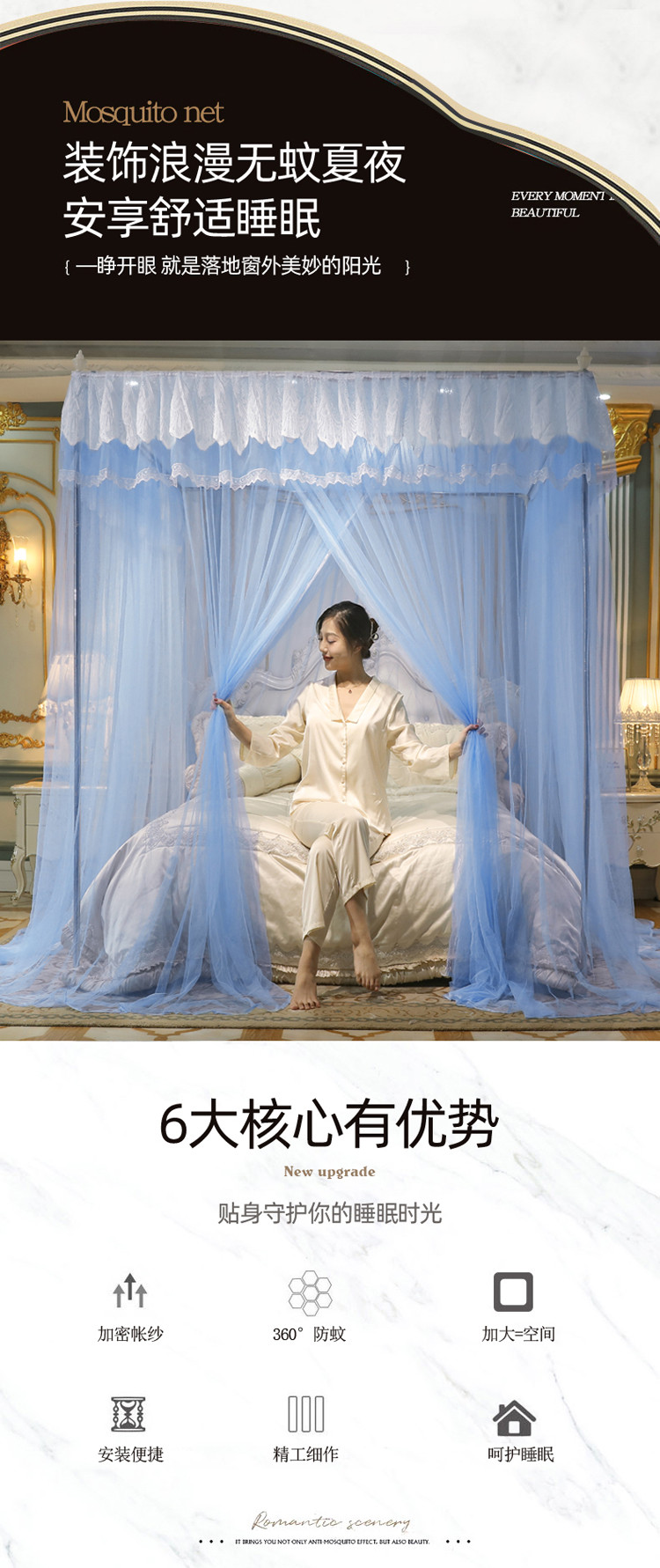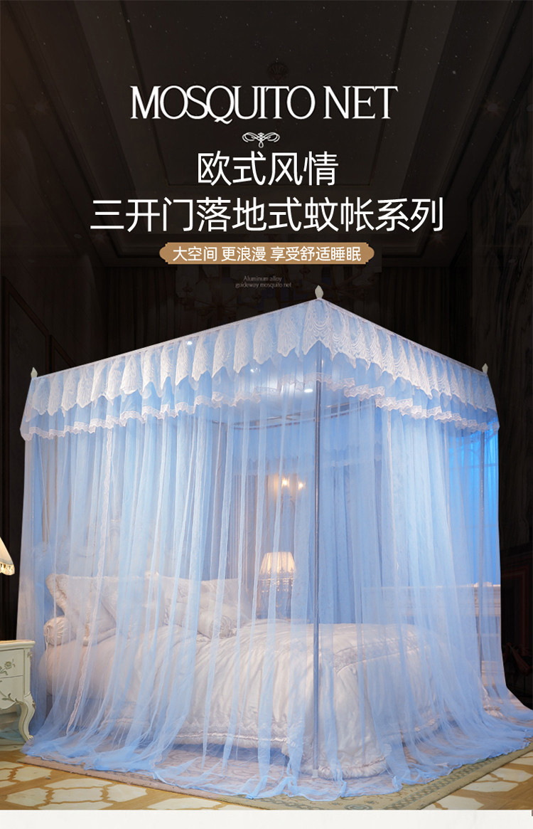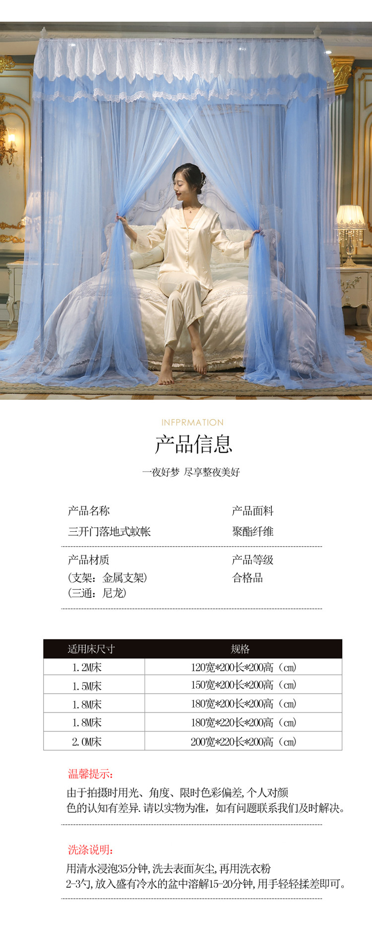 迷仙巢2022新款落地三开门蚊帐C18一生有你系列 兰色,兰色