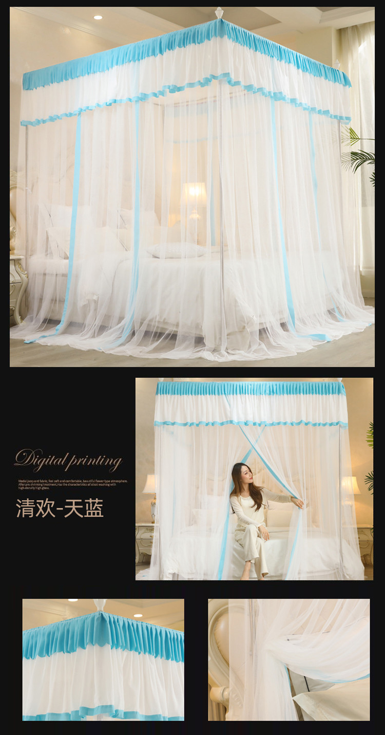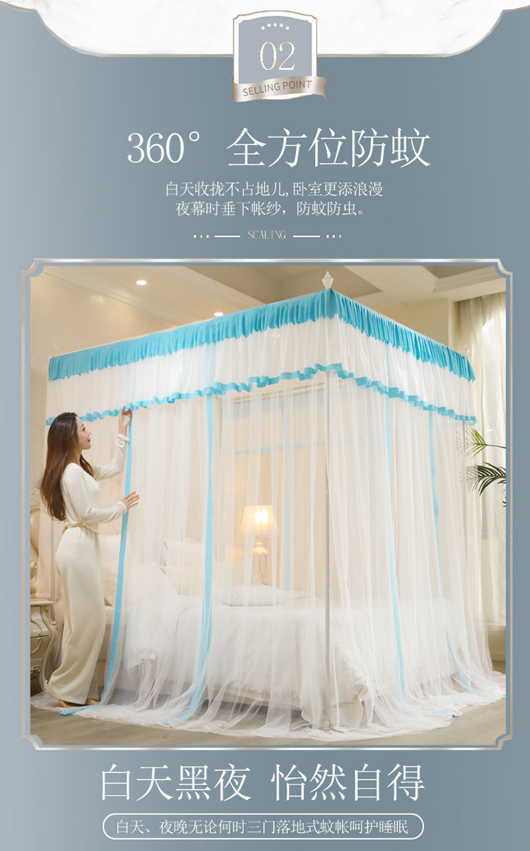迷仙巢2022新款落地三开门蚊帐C18一生有你系列 兰色,兰色