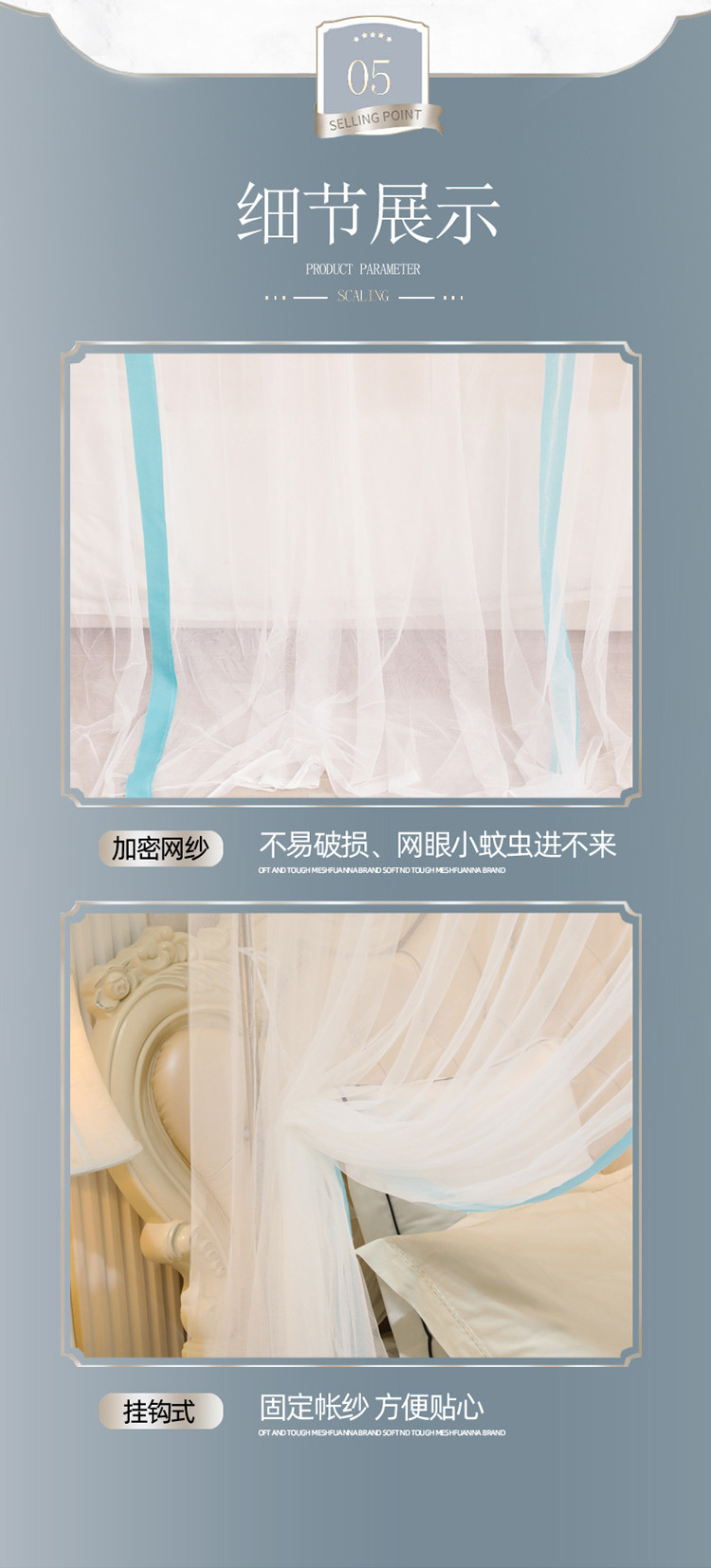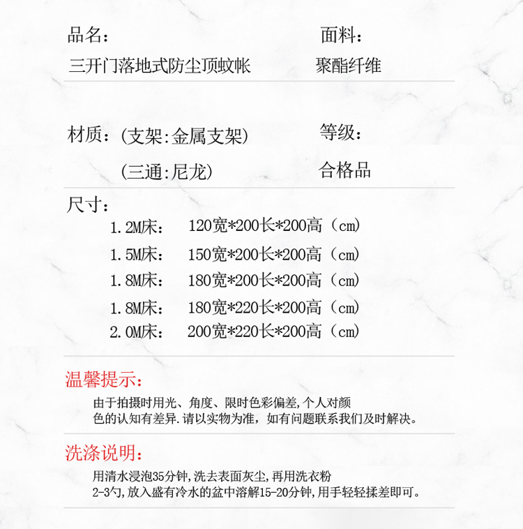 商品名称:(总)迷仙巢2022新款三开门落地式防尘顶蚊帐-A20清欢