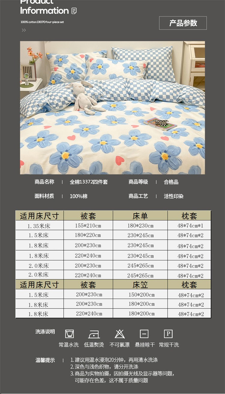 当前位置: 91家纺网 > 商品网购 > 床品套件 > 四件套 > 全棉普通四件套 > 芊寻家居 2024年新款全棉印花13372四件套 绽放