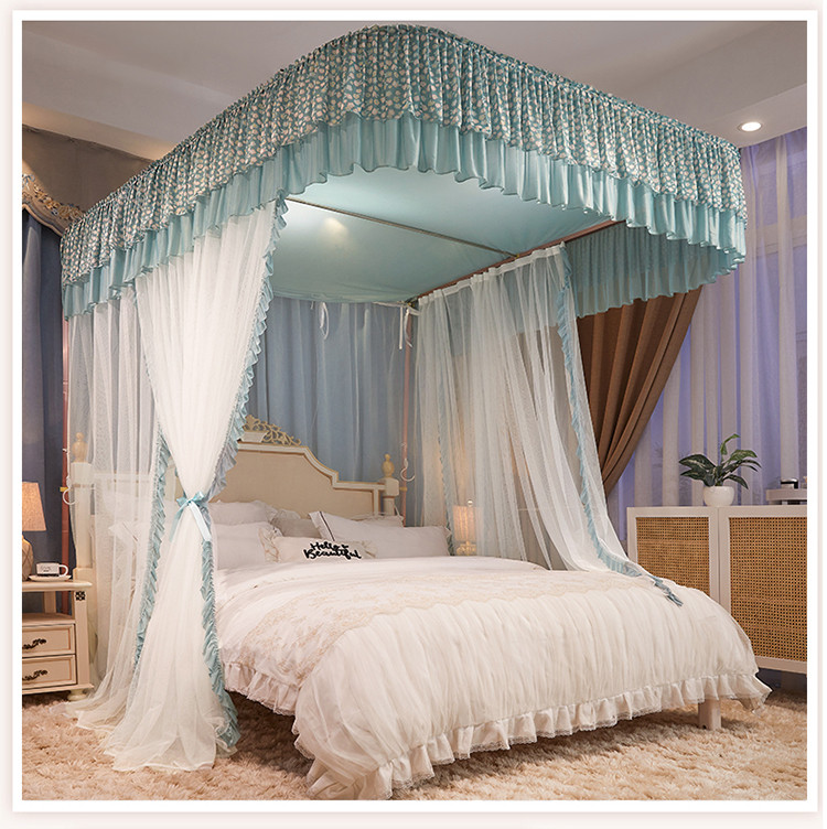 (总)2025新款双层花边全包围床笠款三开门蚊帐-幽梦星辰,奶黄,藕玉,颜淡蓝