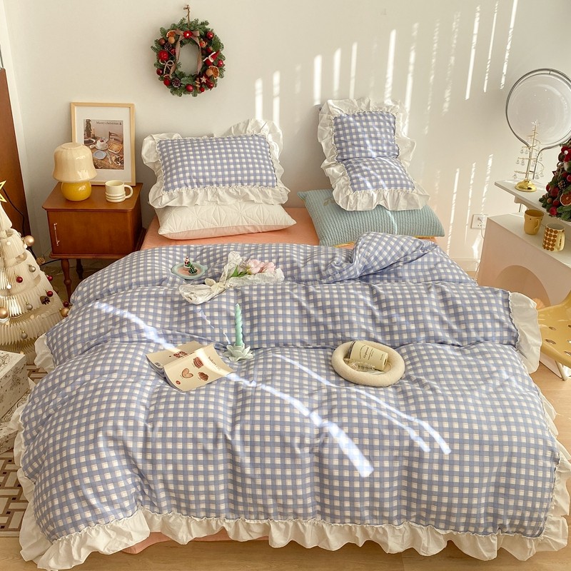 商品名称:昔可2022新款花边格子系列四件套 日落蓝格