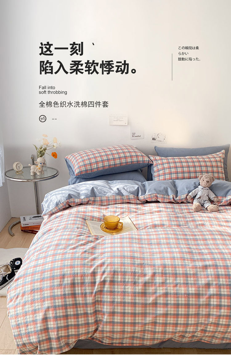 (总)蓝巢家纺 2024新款全棉色织水洗棉学生季三件套四件套-系列,半夏时光-桔,马丁-绿,云舒-粉,半夏布鲁兰,半夏粉色,半夏果绿,半夏米灰,半夏奶茶,半夏浅兰,半夏深灰,贝拉粉,宾利蓝奶茶,冰激凌绿,布鲁兰梧桐灰,丁香粉格,豆沙深灰,粉卡其,黄卡其,黄小格,混搭繁星蓝,简兮兰,简兮绿,蓝调格,蓝灰大格,蓝小格,流年深灰,流年雾蓝,洛卡灰,绿卡其,绿小格,蜜粉格,抹茶绿,奶白薄荷绿,奶白南瓜橘,奶油粉橄榄绿,浅蓝灰,浅紫奶油粉,珊瑚红卡其,深灰浅灰,素薄荷绿,素冰川灰,素布鲁兰,素浅兰,素深灰,天空蓝奶黄,云舒咖