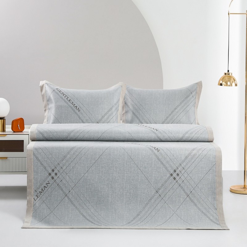 商品名称:馨蕊 2022新款高端可水洗抗菌冰感席四件套 英伦时光-灰