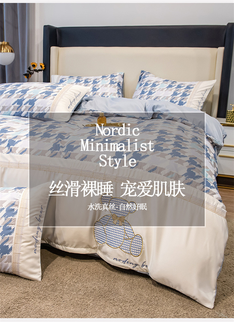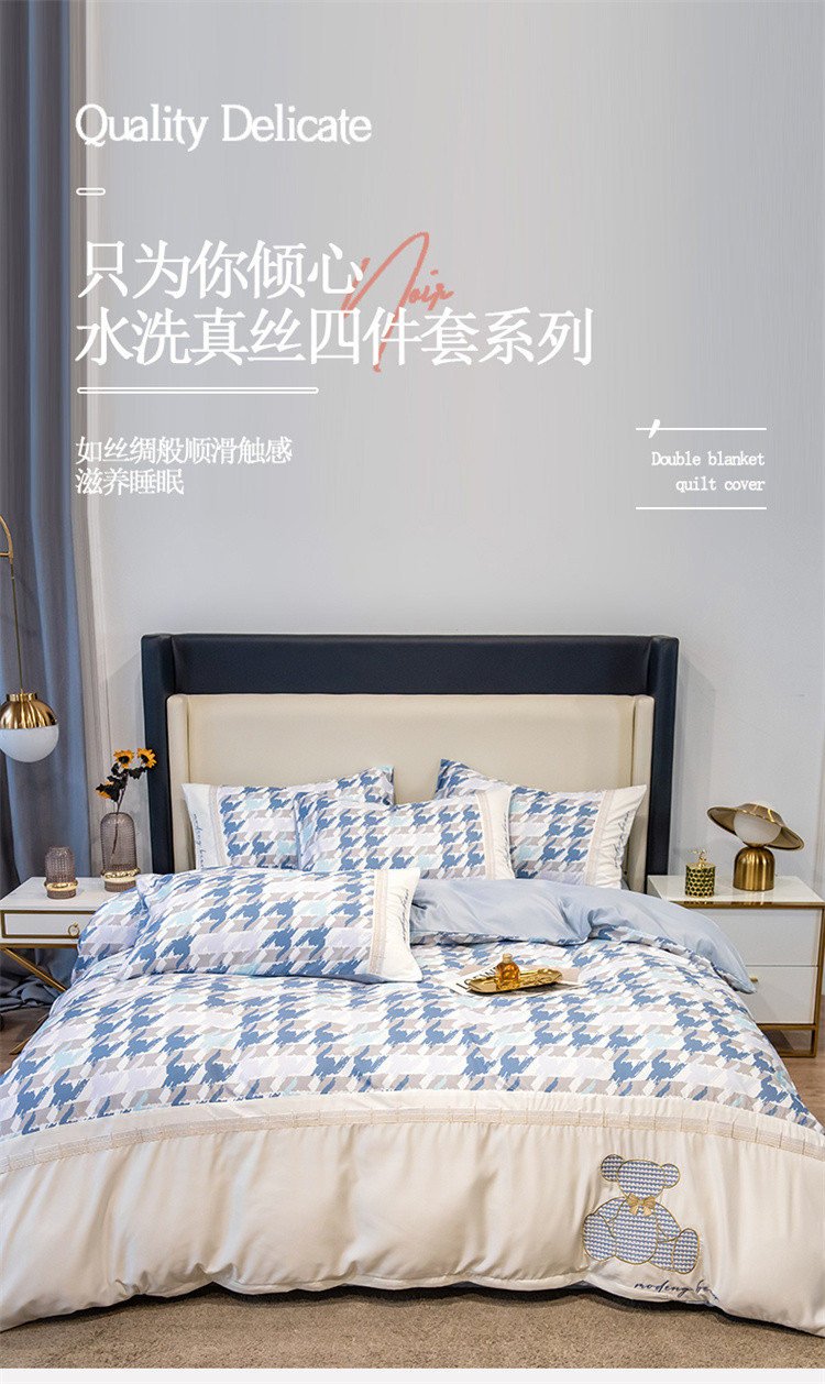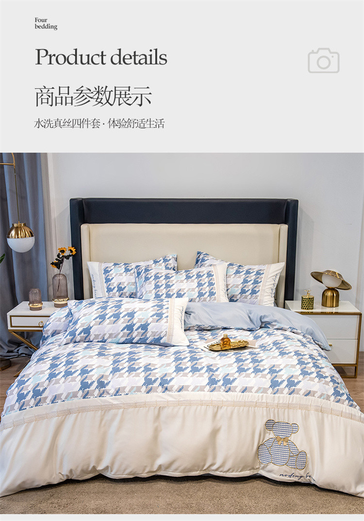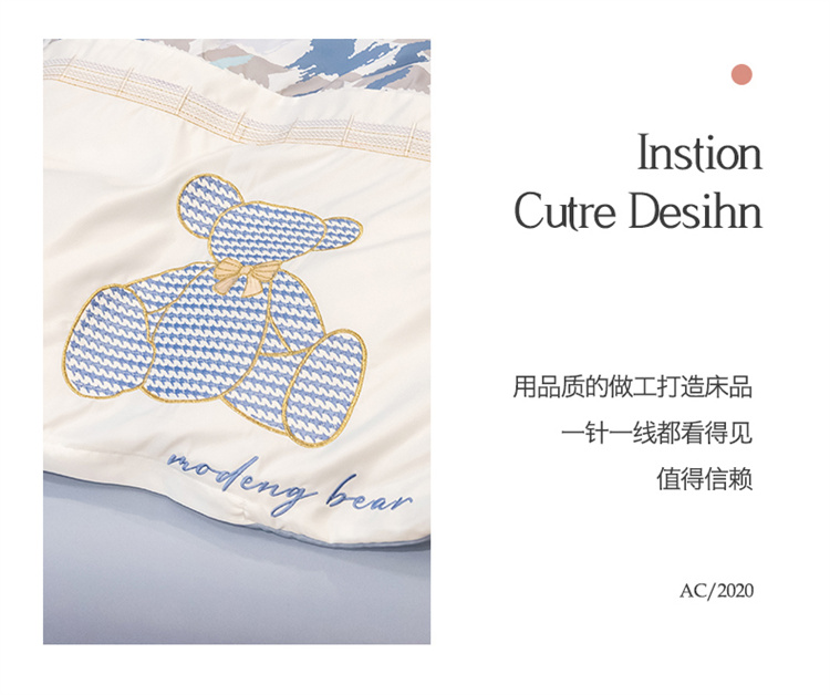 商品名称:芃成家纺 2022新款水洗真丝四件套-刺绣熊 熊出没-蓝