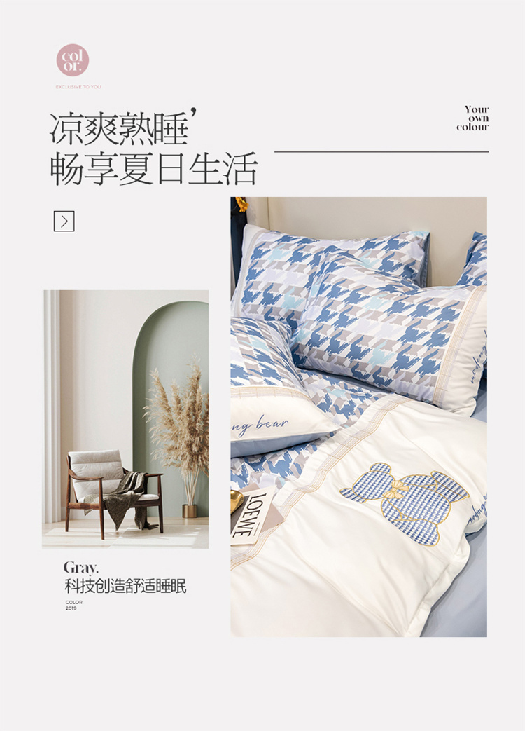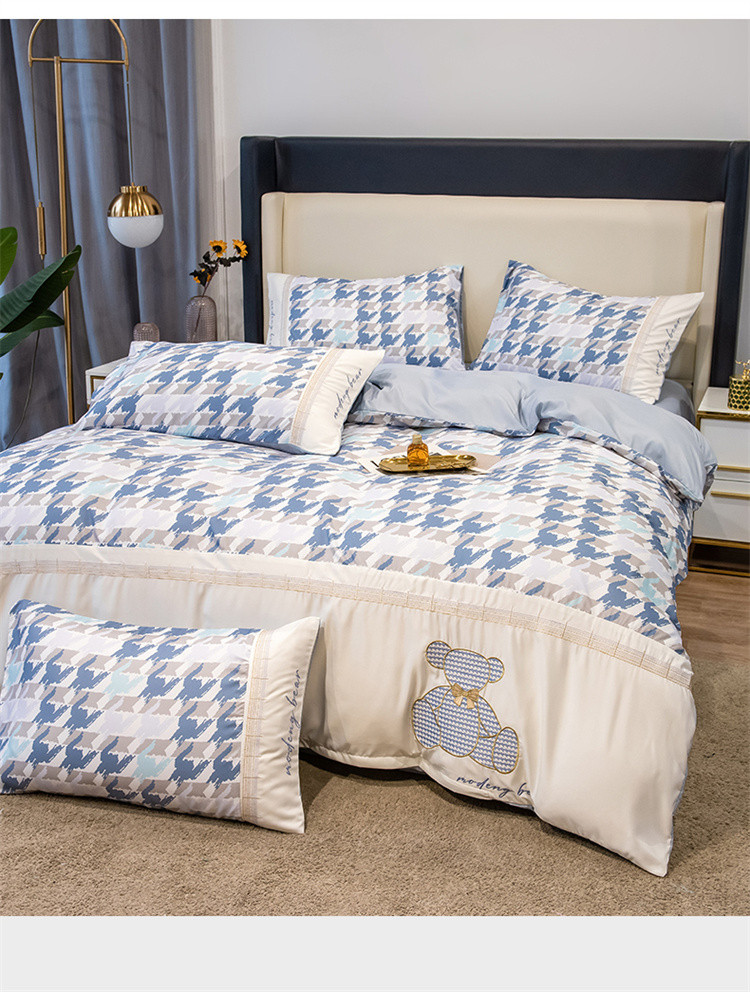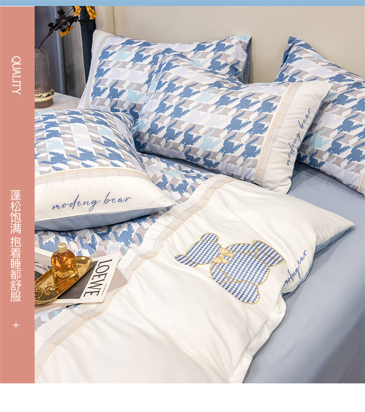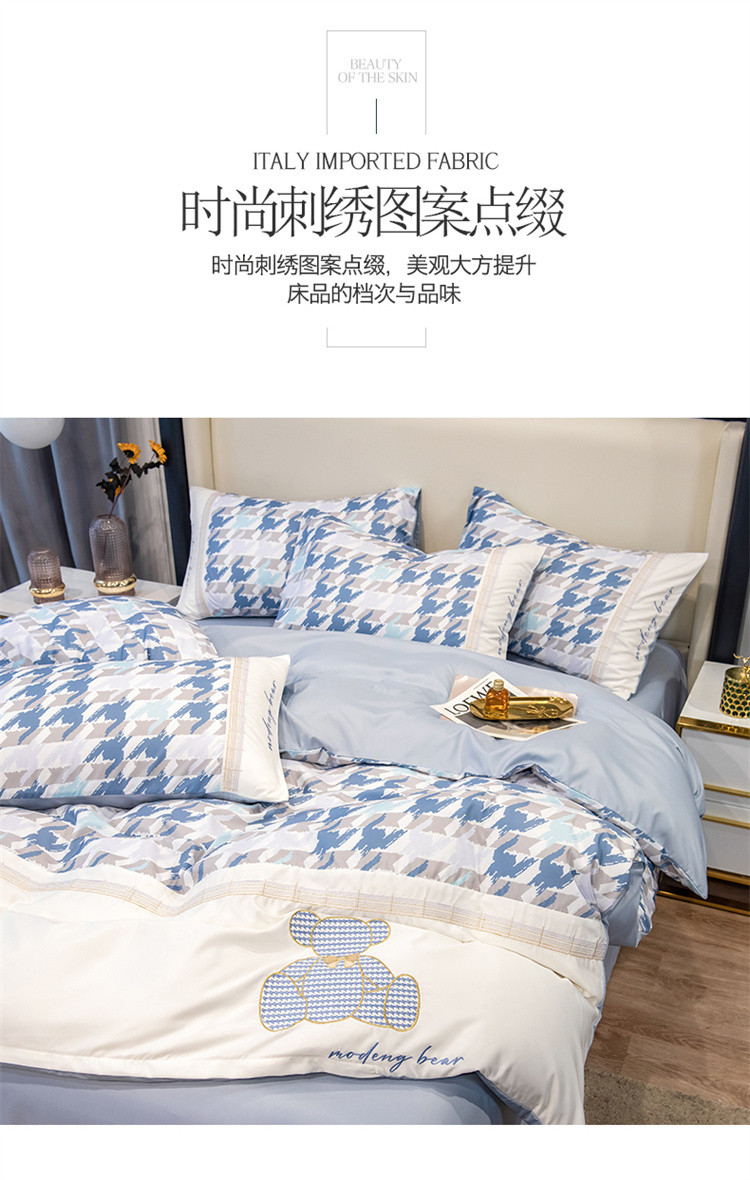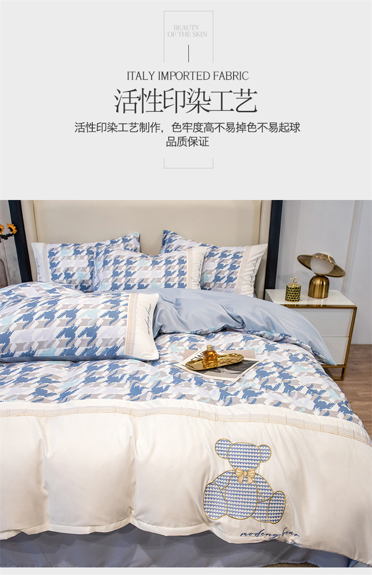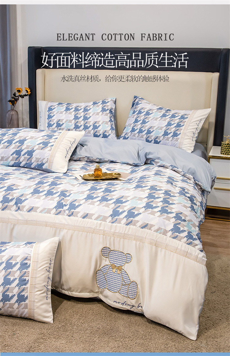 芃成家纺 2022新款水洗真丝四件套-刺绣熊 熊出没-蓝