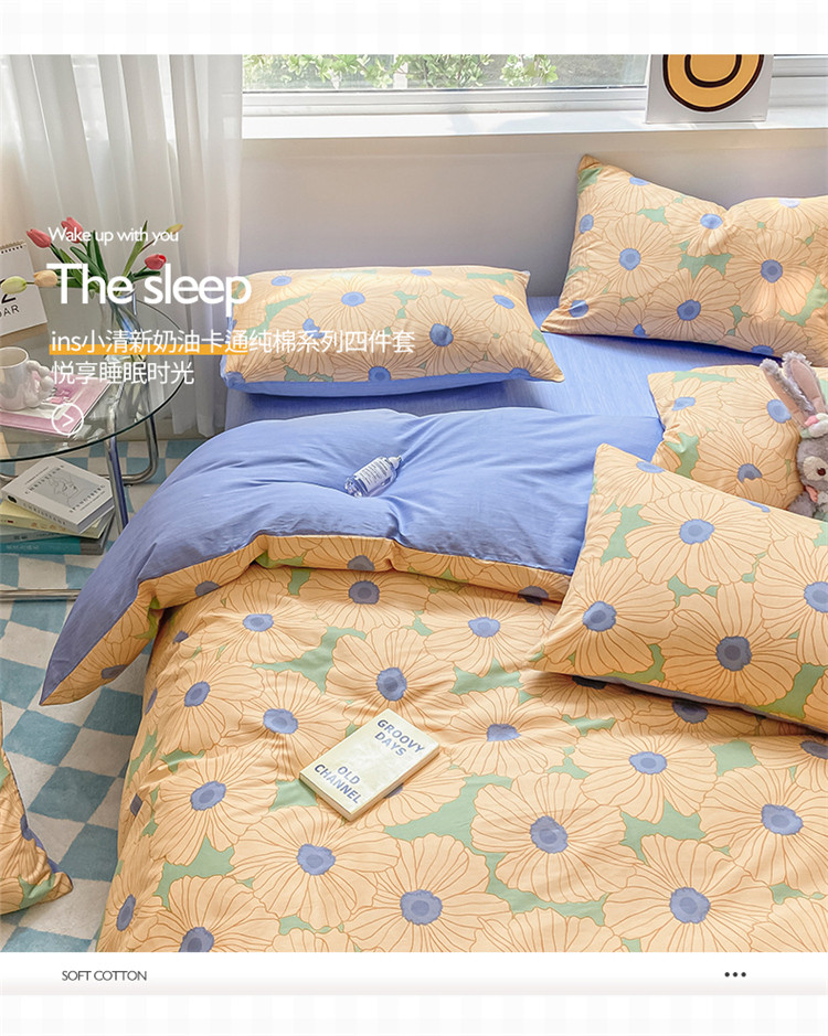 商品名称:桃子家居 2022新款ins小清新奶油卡通纯棉系列四件套 晚风