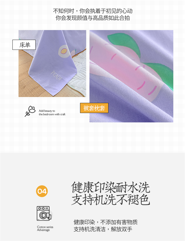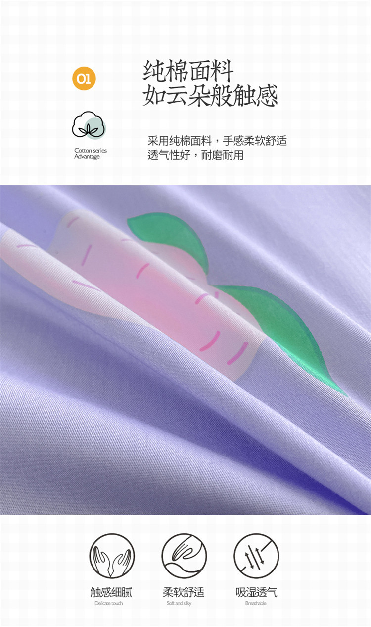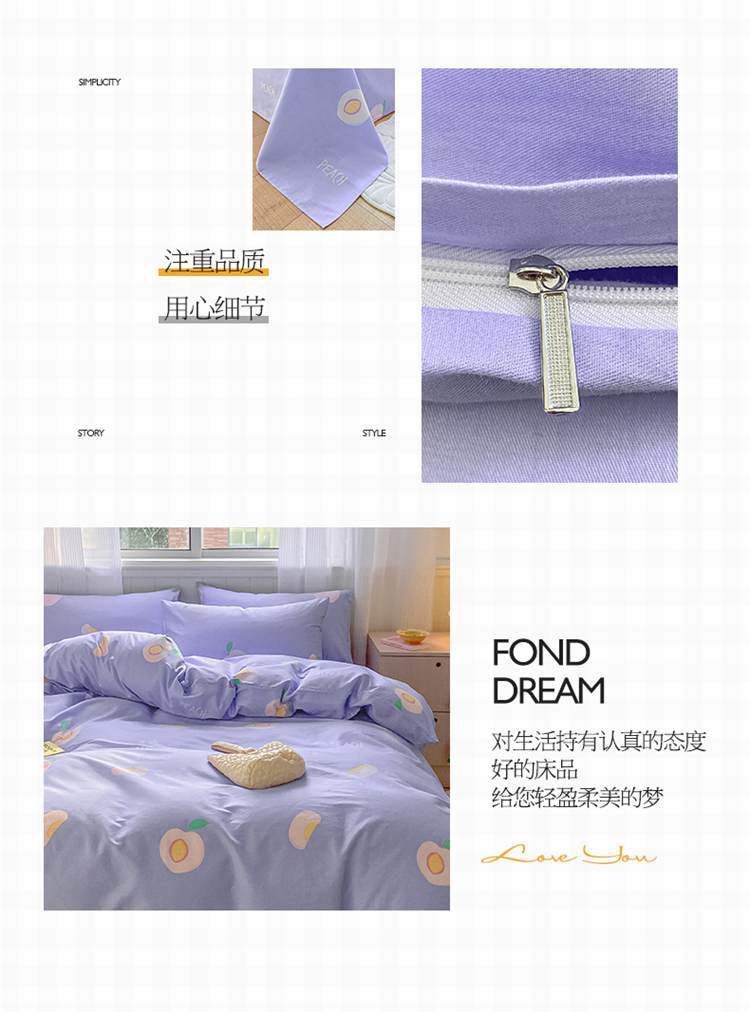商品名称:桃子家居 2022新款ins小清新奶油卡通纯棉系列四件套 紫桃