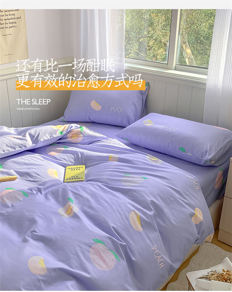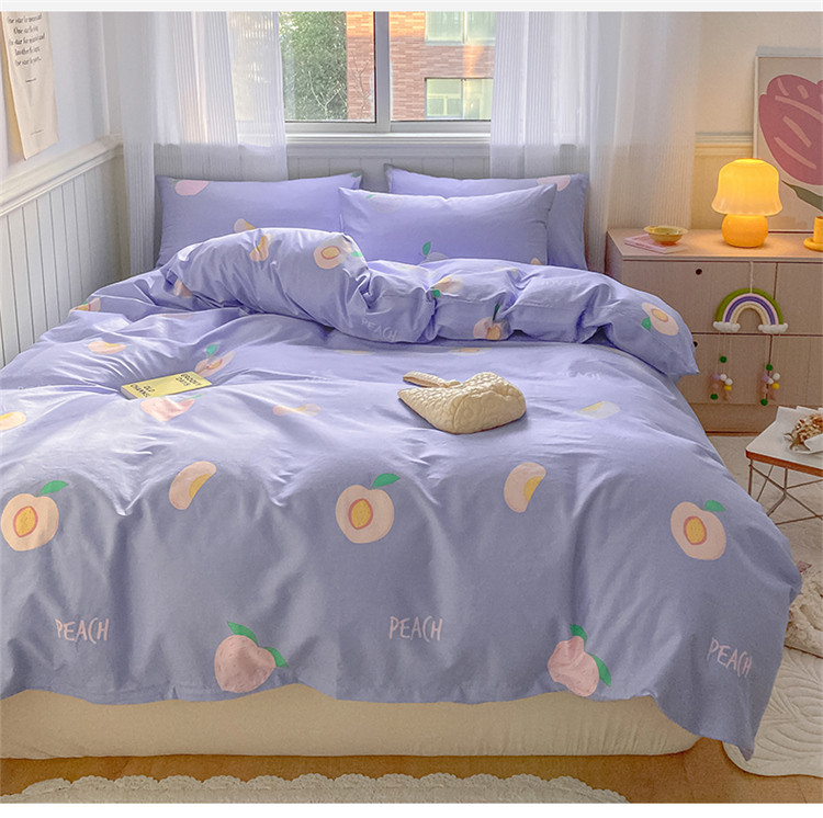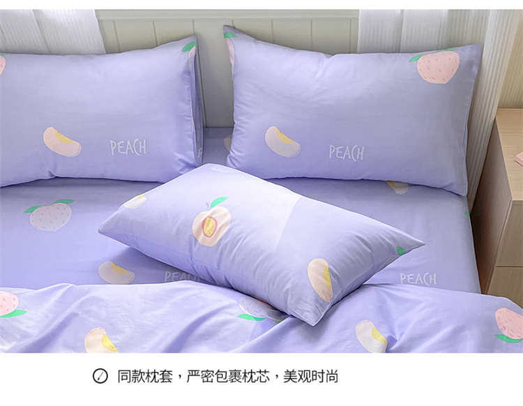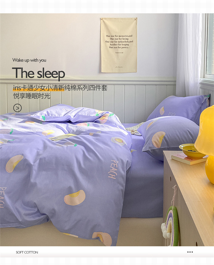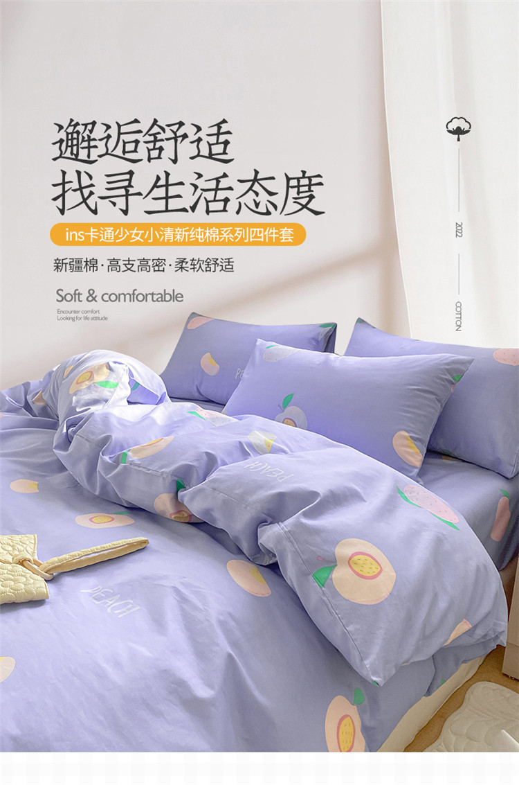 桃子家居 2022新款ins小清新奶油卡通纯棉系列四件套 紫桃