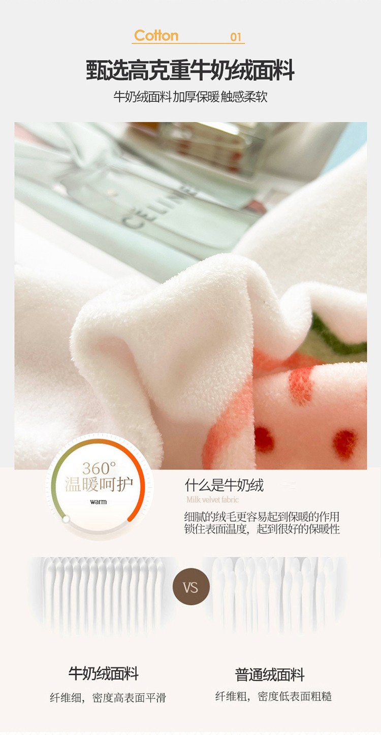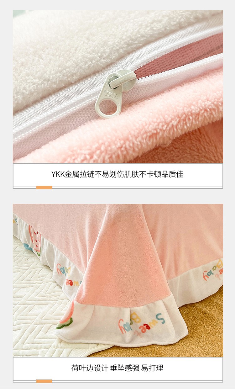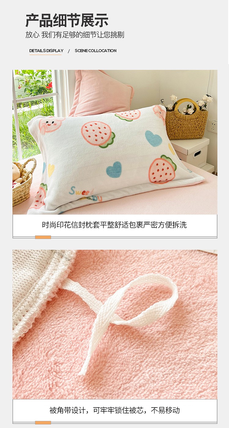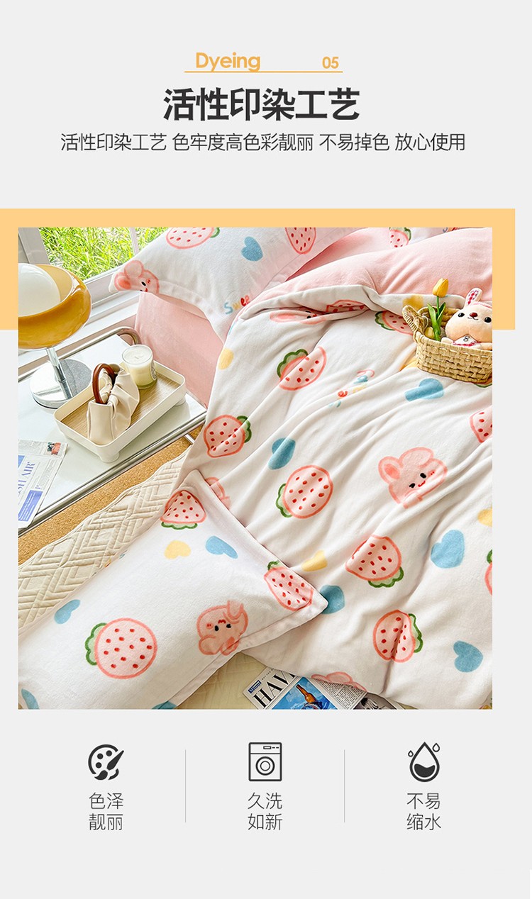 呗旺鹿 2022印花小清新加厚保暖牛奶绒四件套直播 草莓兔兔