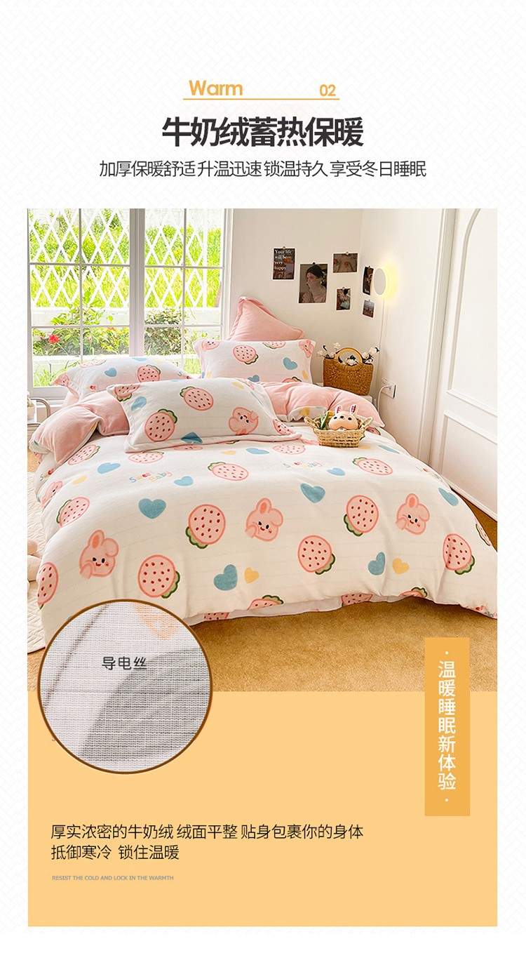 商品名称:呗旺鹿 2022印花小清新加厚保暖牛奶绒四件套直播 草莓兔兔