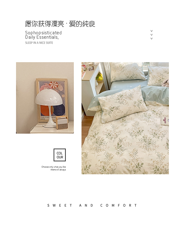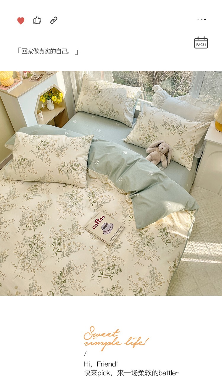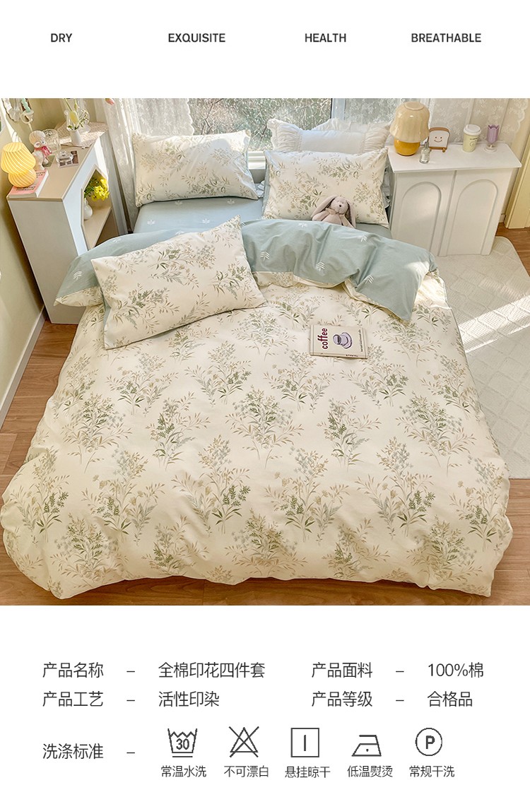 商品名称:瑞莱 2023秋季新款全棉印花四件套-花卉系列 仙草
