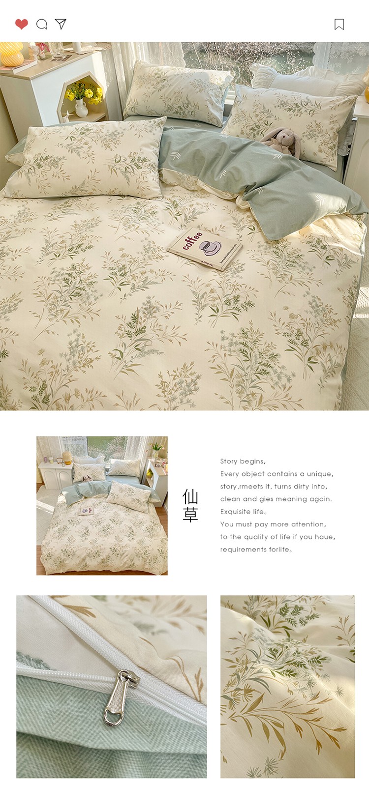 瑞莱 2023秋季新款全棉印花四件套-花卉系列 仙草