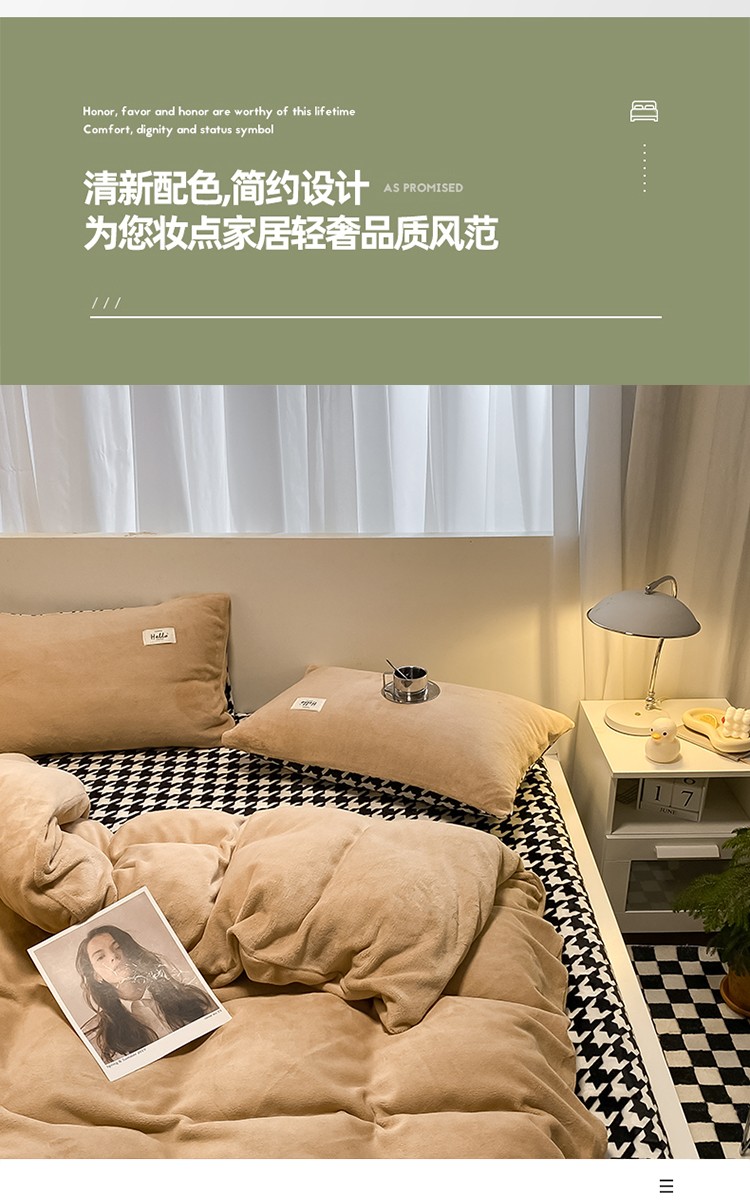 当前位置: 91家纺网 > 商品网购 > 床品套件 > 四件套 > 牛奶绒四件套 > 花漾家居 2023新款秋冬新品千鸟格双拼牛奶绒四件套 奶咖