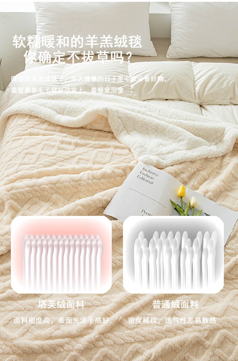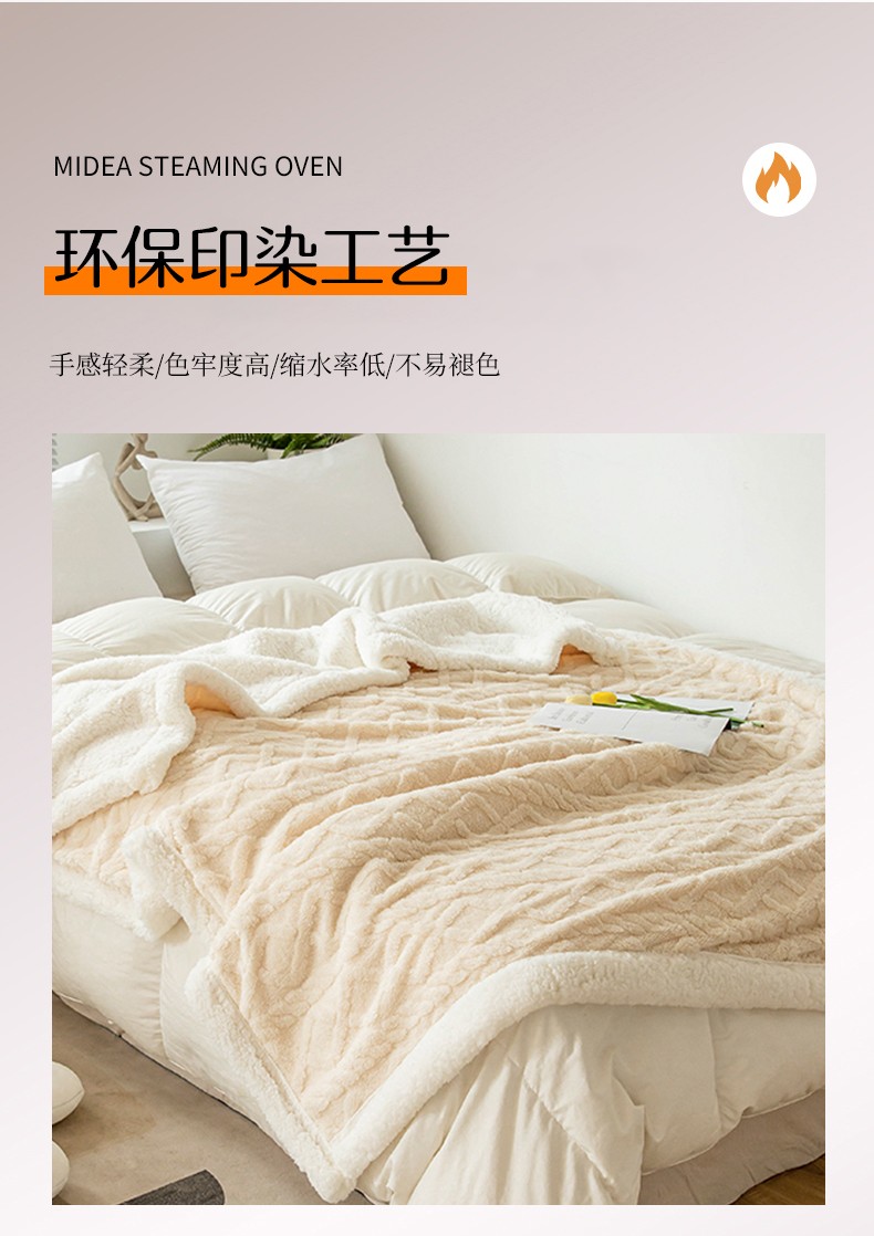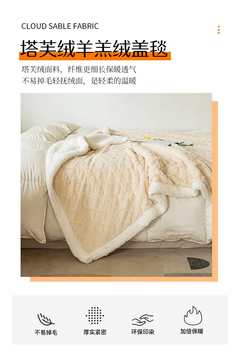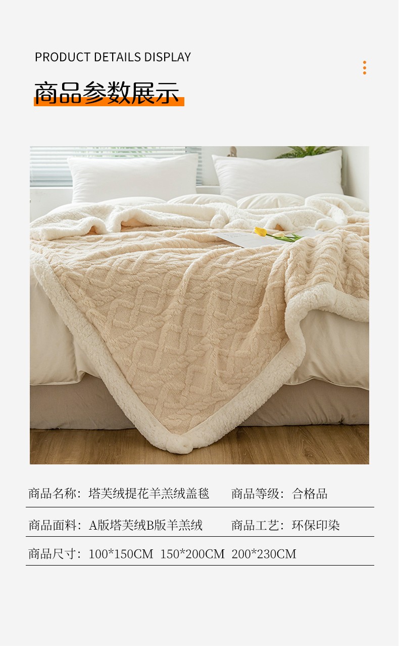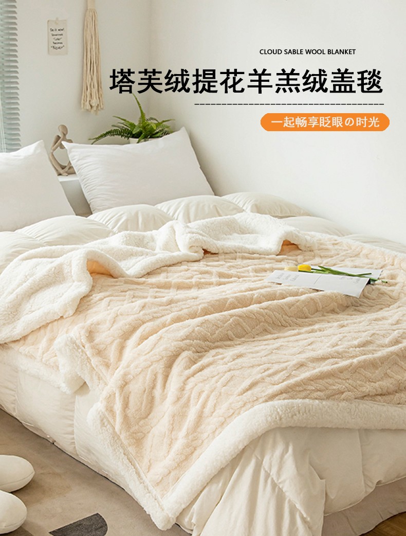 商品名称:网客家纺 2024新款塔芙绒提花羊羔绒盖毯 米杏