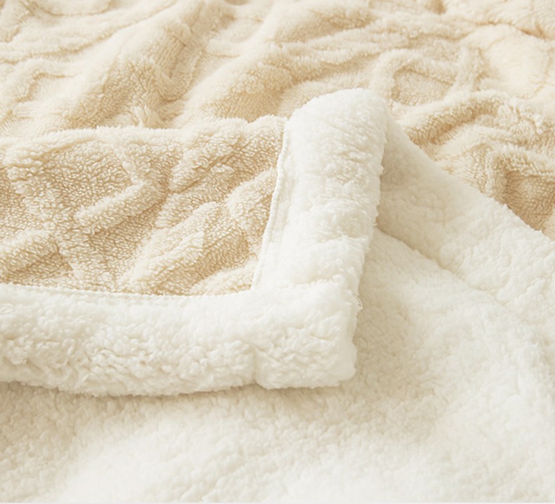 网客家纺 2024新款塔芙绒提花羊羔绒盖毯 米杏