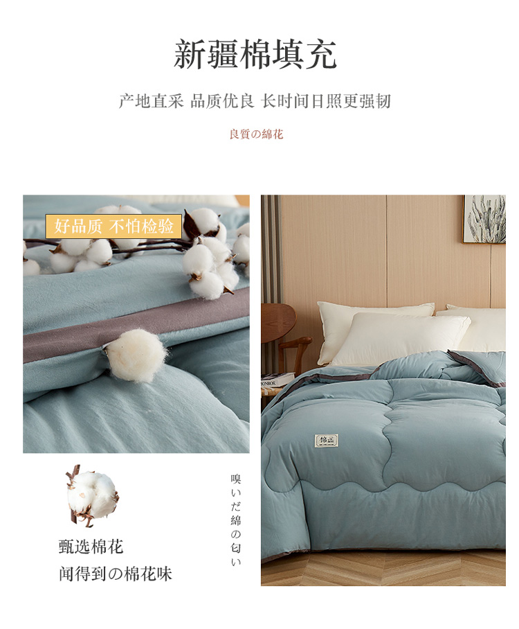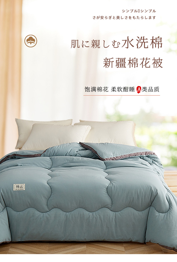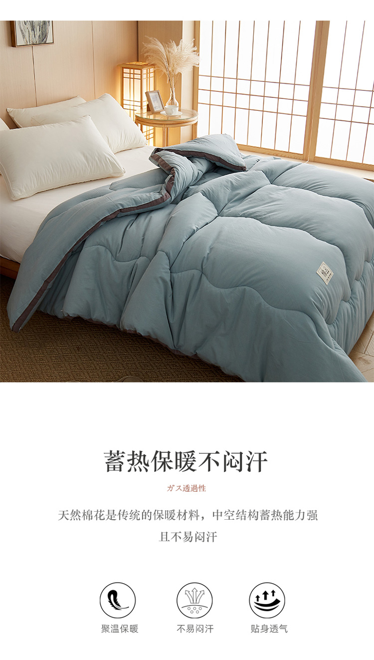 商品名称:暖阳 2023新款A类水洗棉50%纯色日系冬被新疆棉花被豆绿