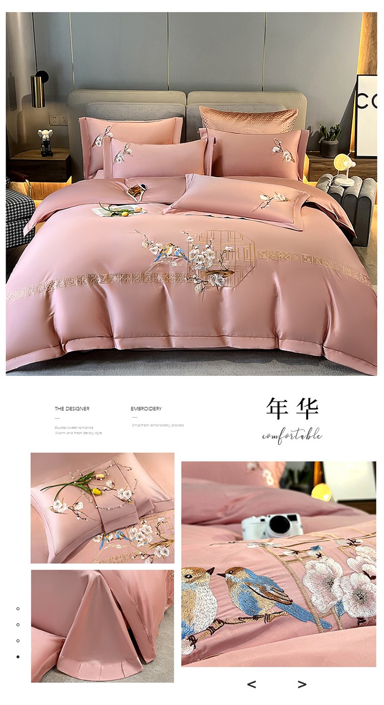2025新款140支澳棉纯棉刺绣绣花四件套 年华