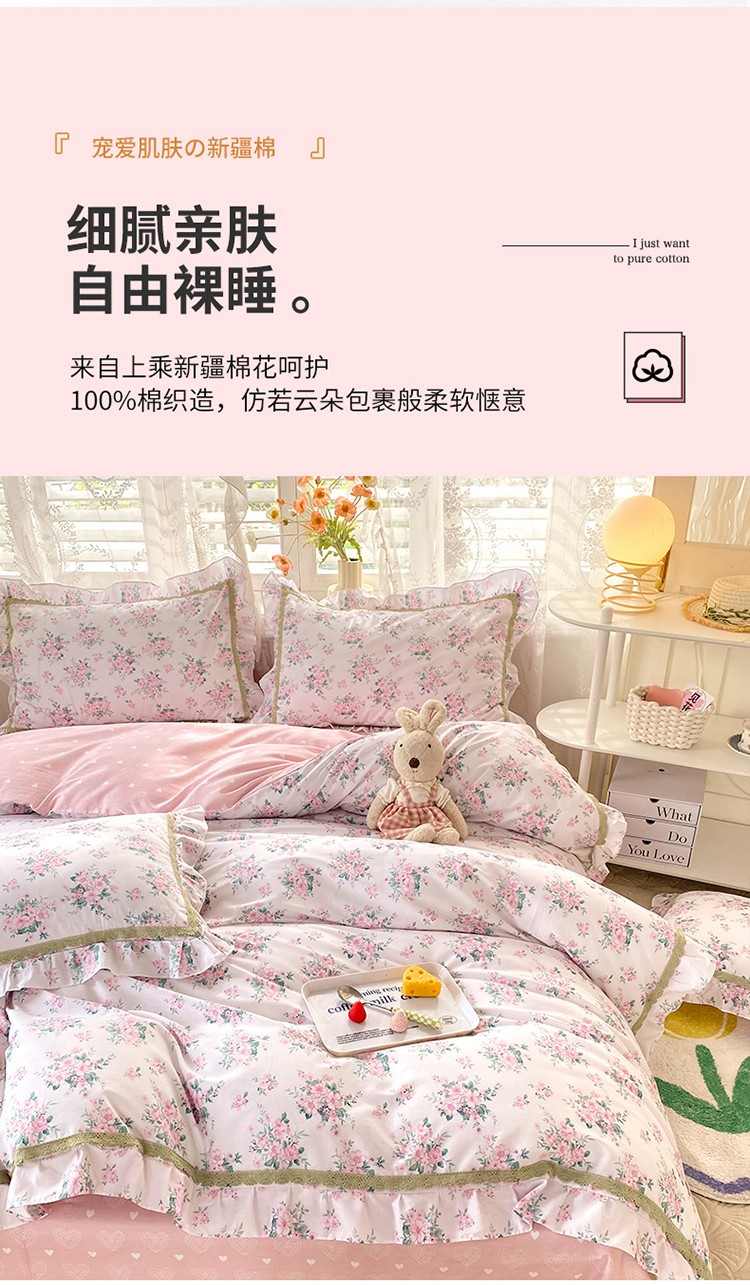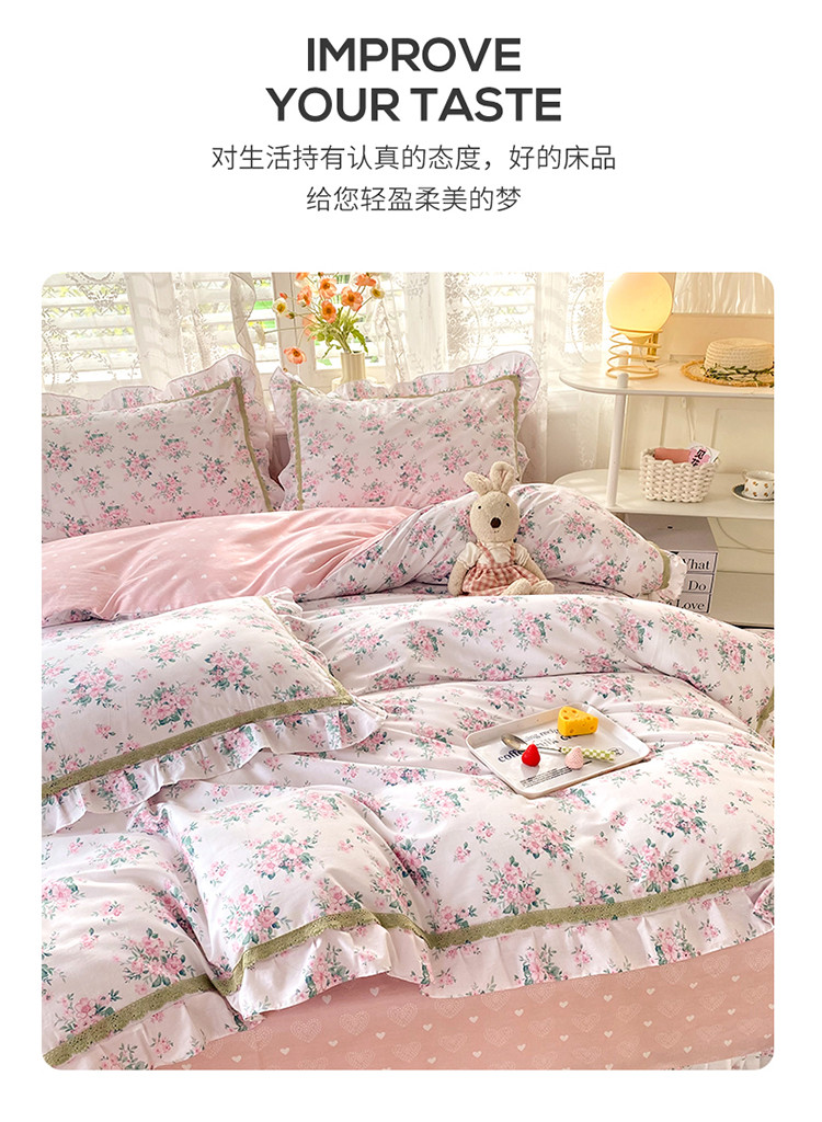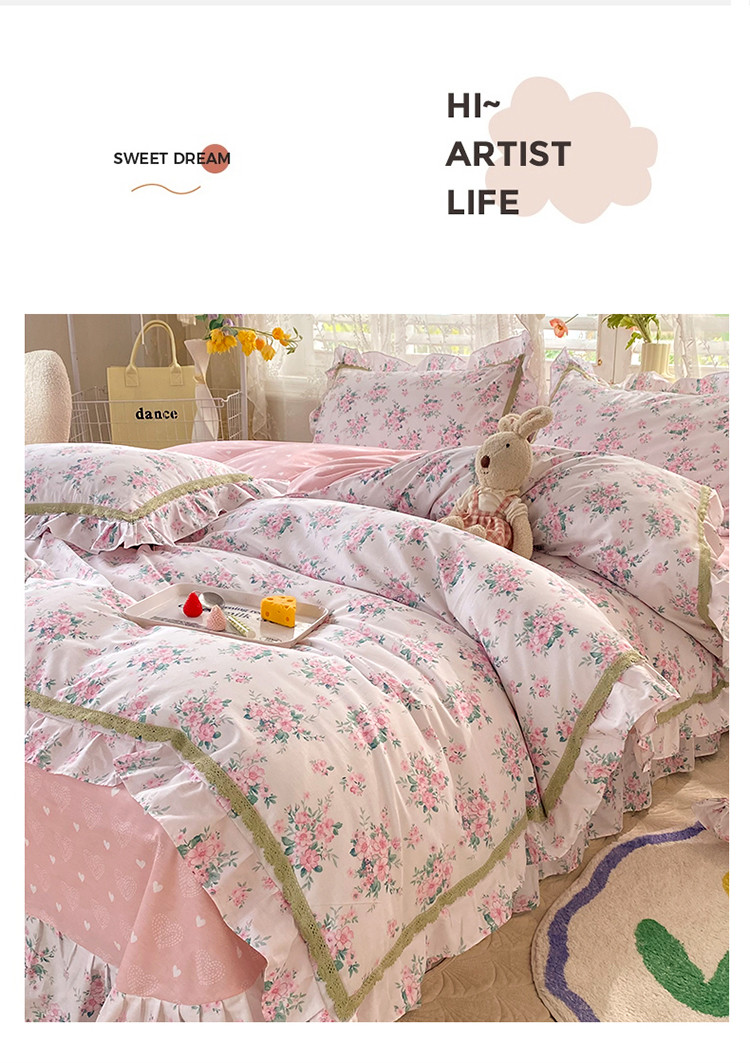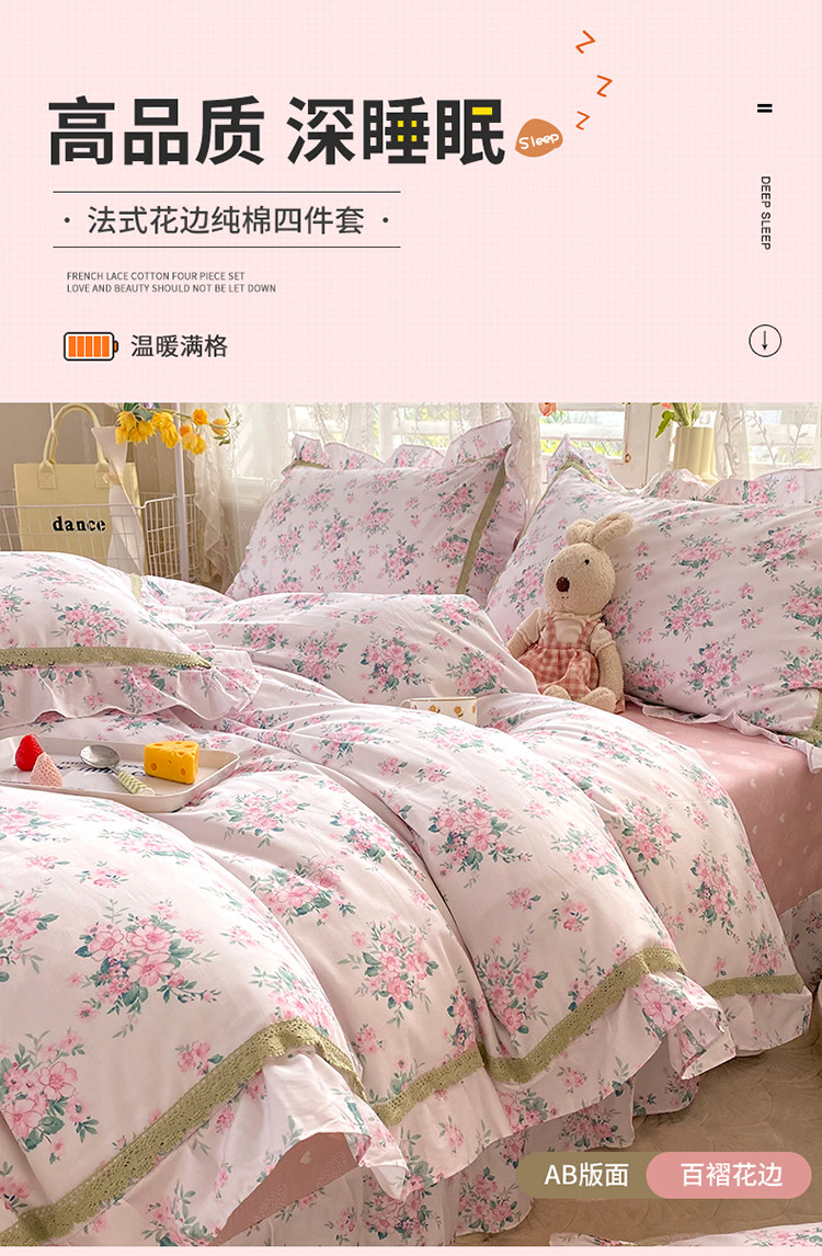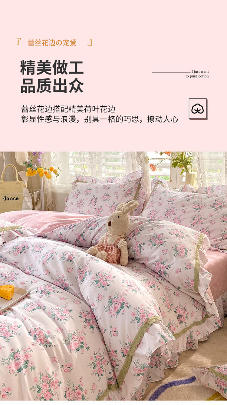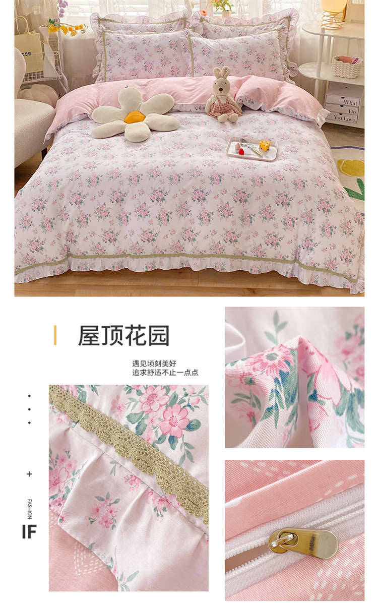 商品名称:艾唯希家纺 2024新款法式花边纯棉四件套-第二批 屋顶花园