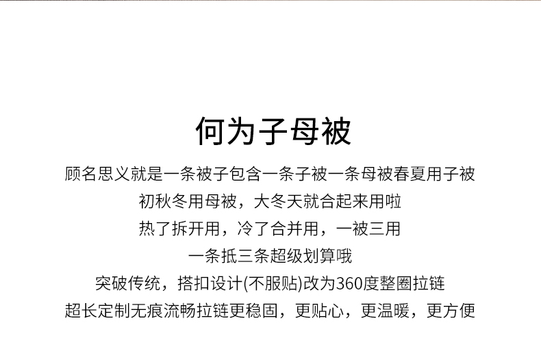 商品名称:(55%大豆)A类100支新疆长绒棉大豆拉链子母被全棉子母被 豆皇