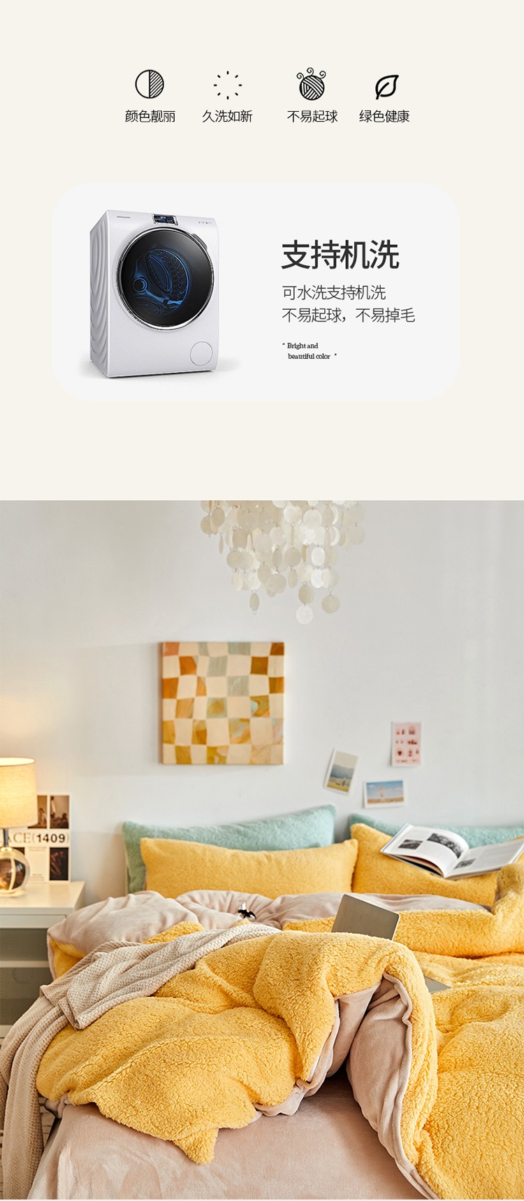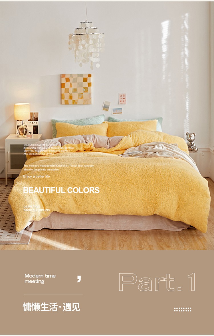 商品名称:大元 2025新款A版羊驼绒B版牛奶绒纯色四件套 奶黄