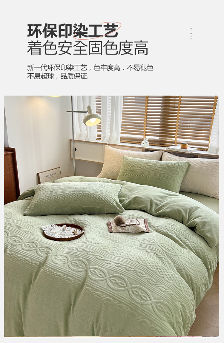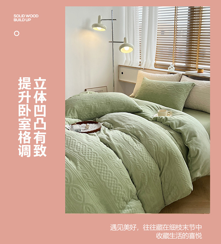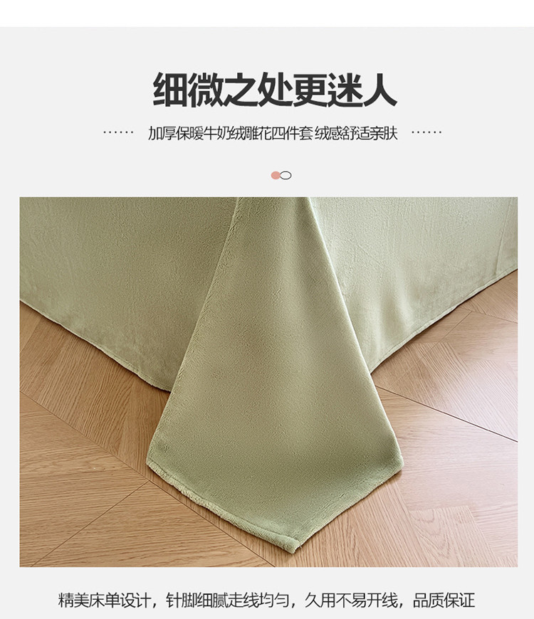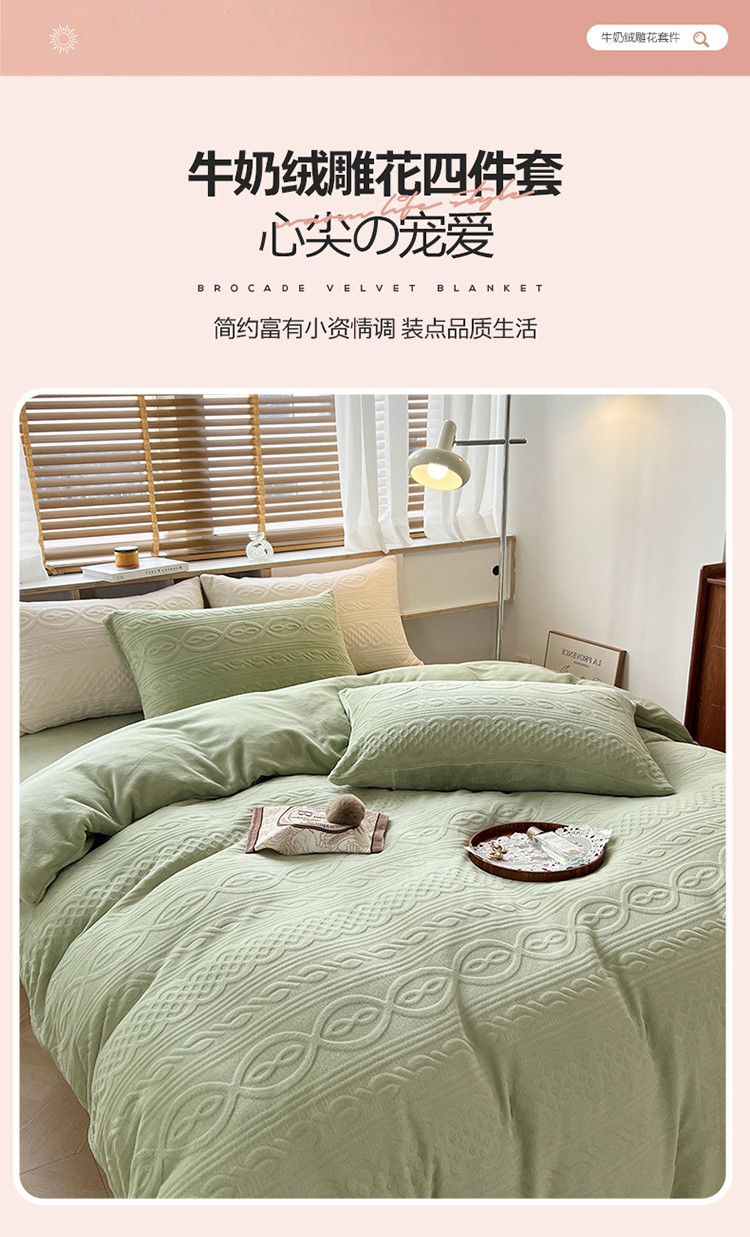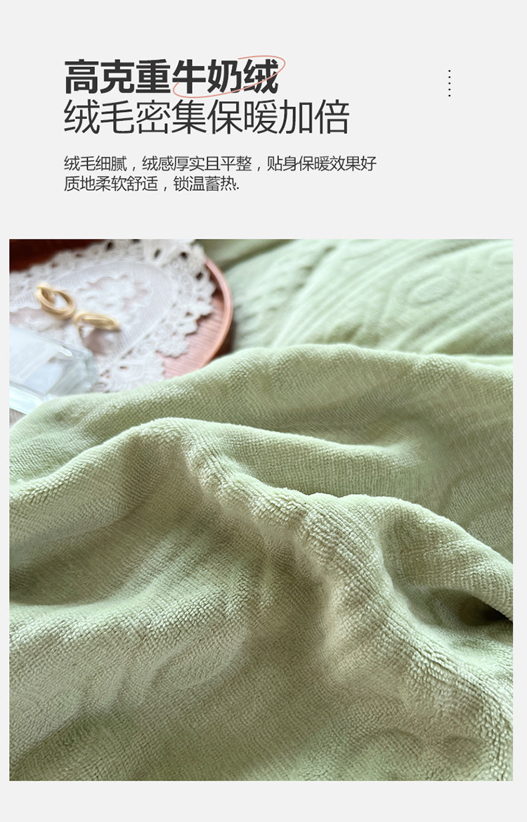 商品名称:N先生2022新款高克重雕花绒牛奶绒四件套 丽莎-绿