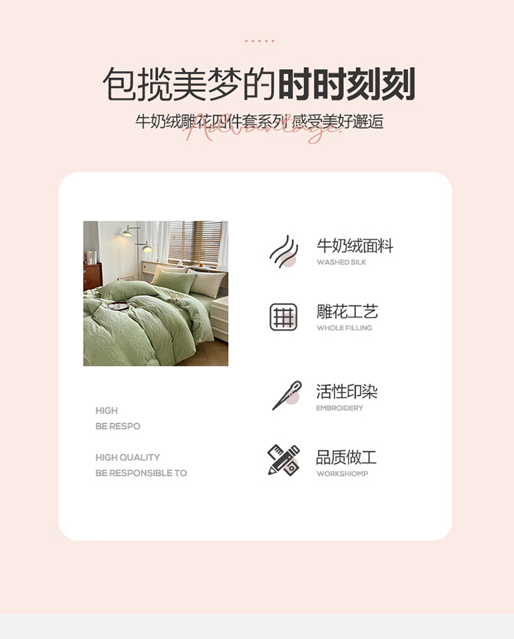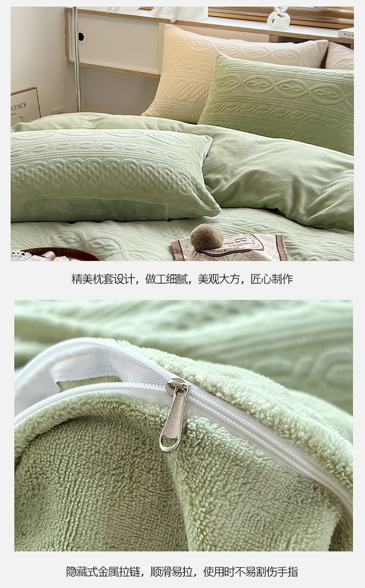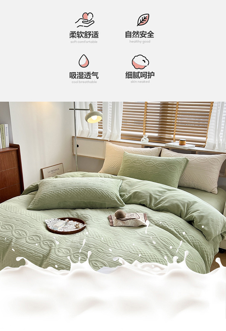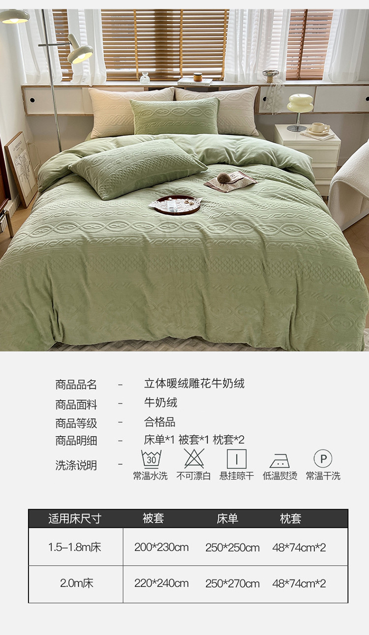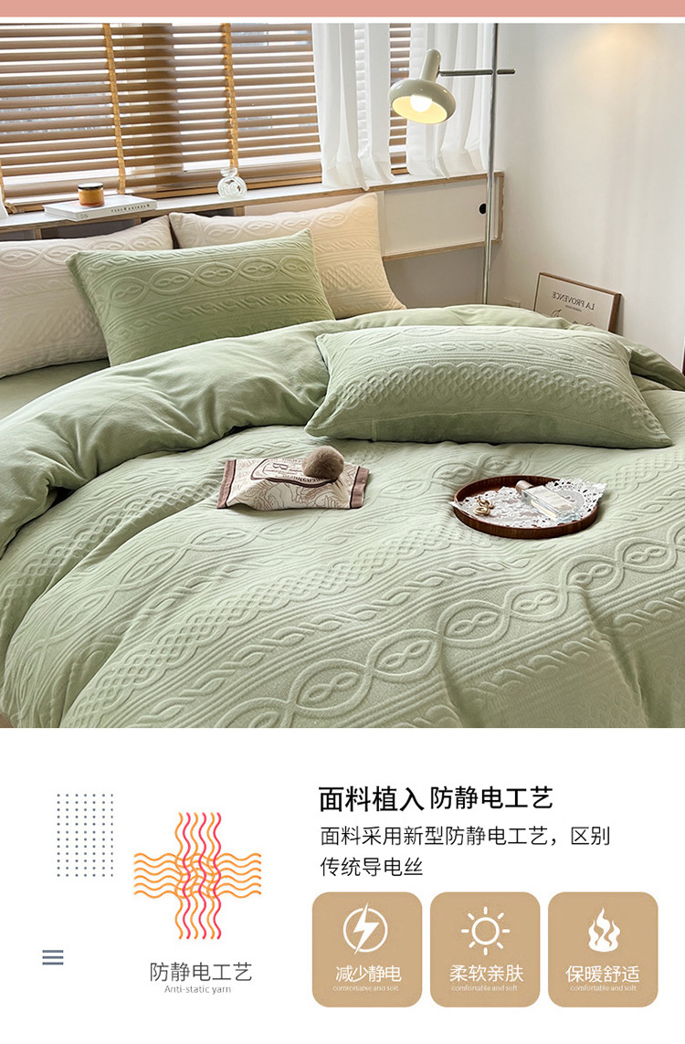商品名称:N先生2022新款高克重雕花绒牛奶绒四件套 丽莎-绿