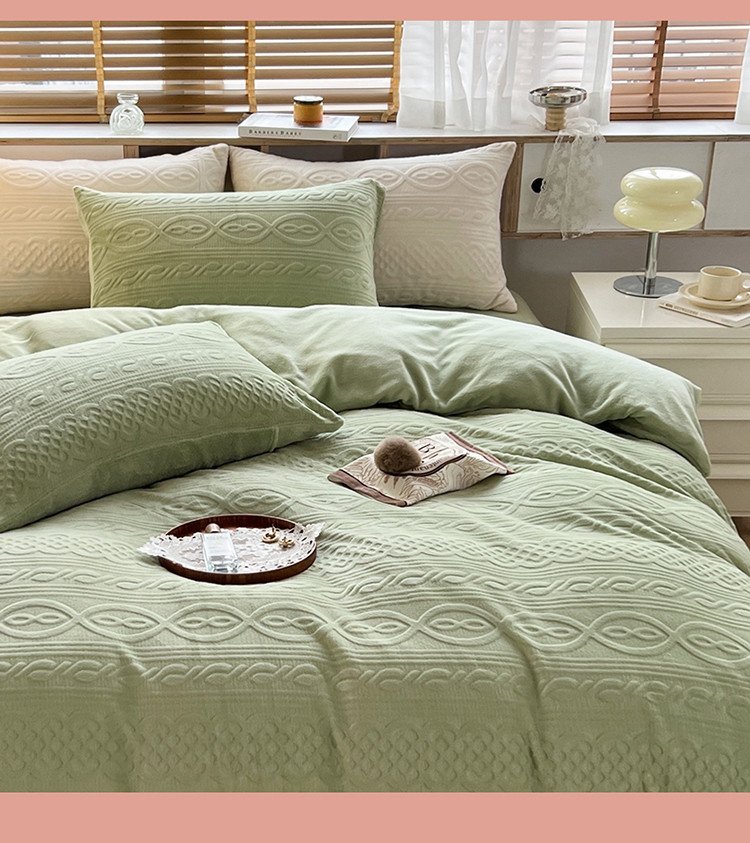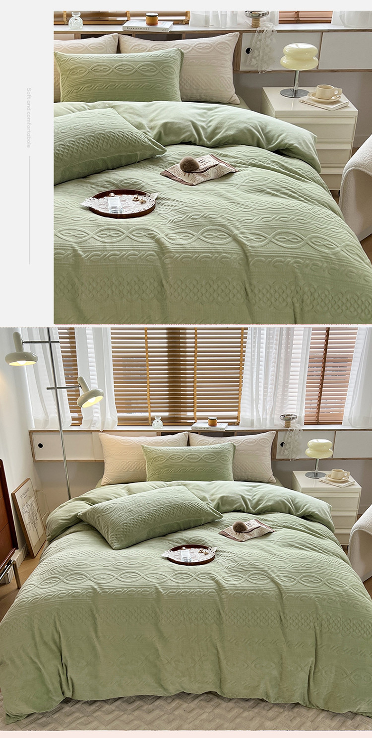 N先生2022新款高克重雕花绒牛奶绒四件套 丽莎-绿