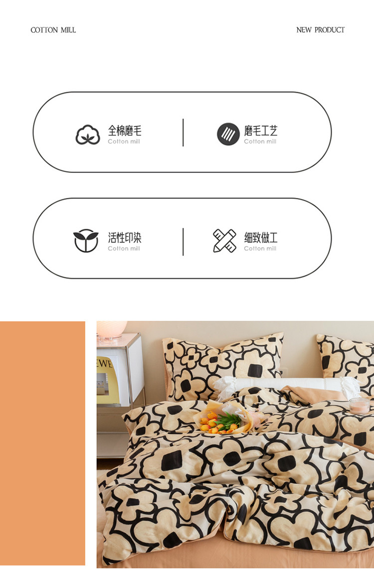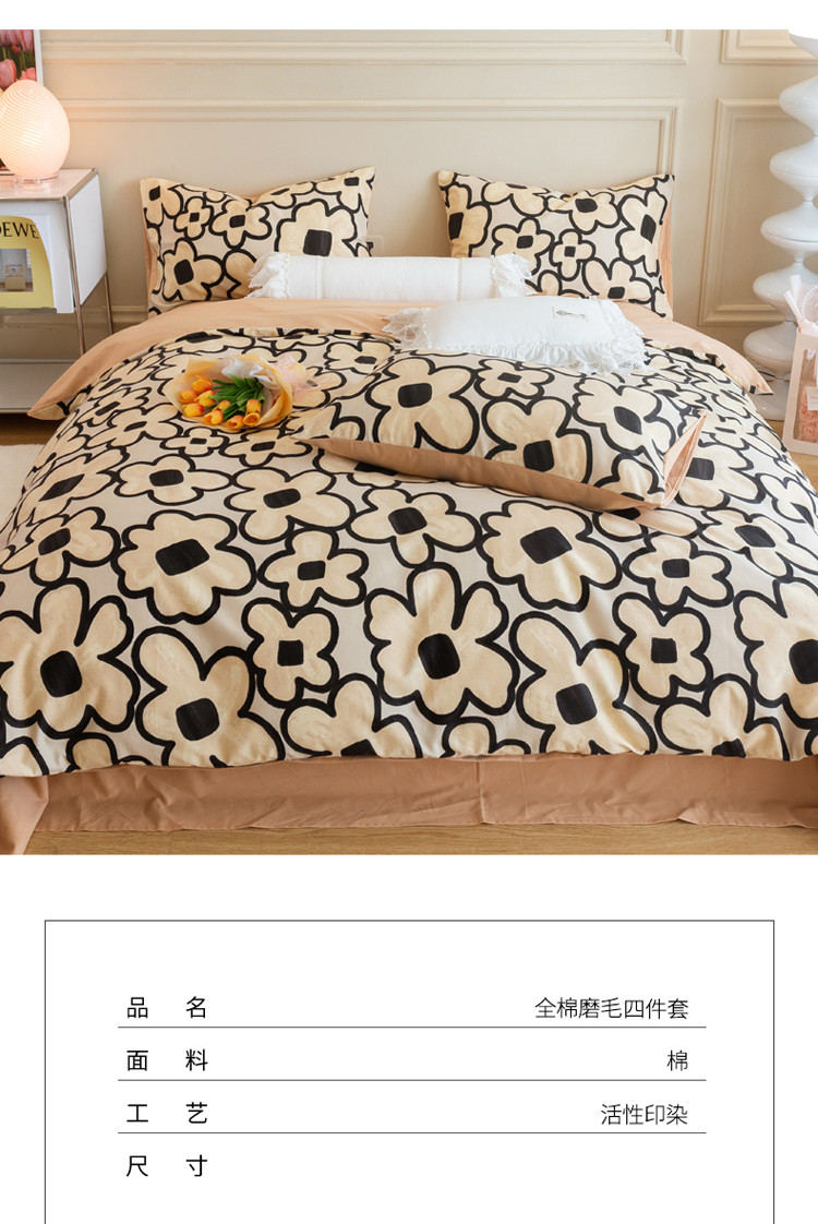 商品名称:千朵 2022新款活性生态纯棉磨毛印花四件套 花影缤纷