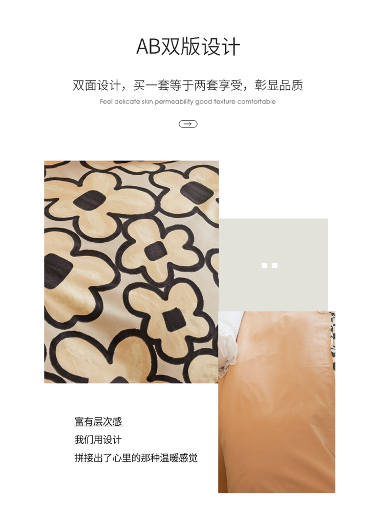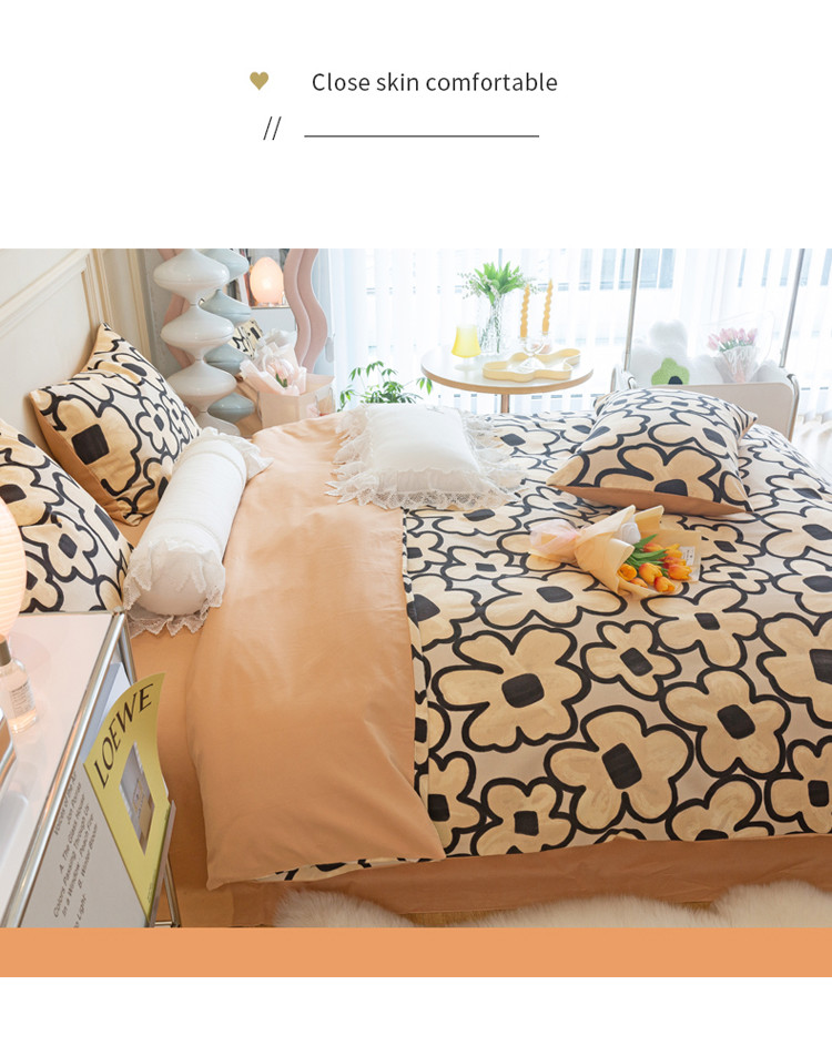 千朵 2022新款活性生态纯棉磨毛印花四件套 花影缤纷